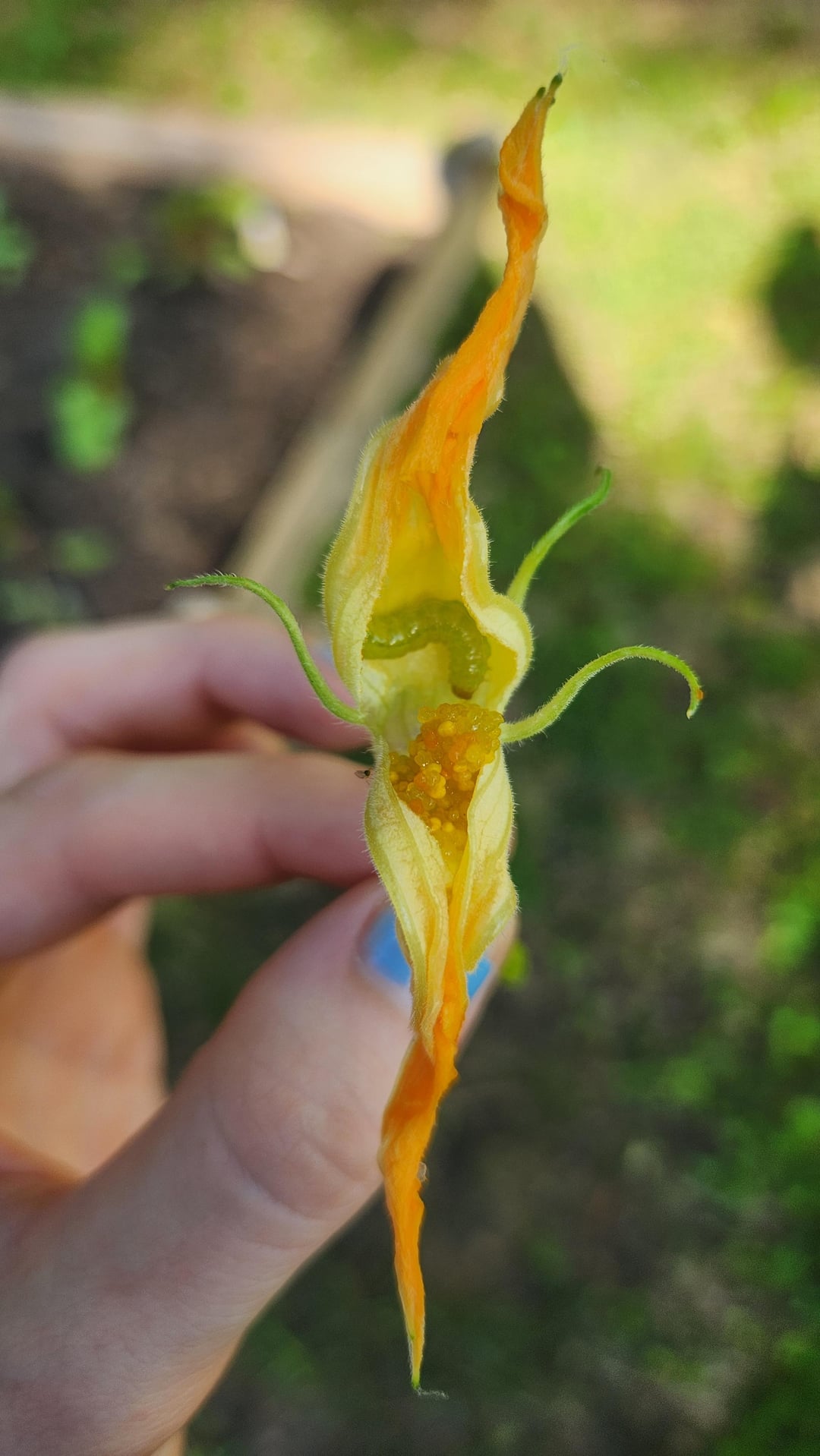 They spread so fast. I have one honeynut and one acorn squash remaining. They got into every budding honeydew melon and killed them all. I found a gross little worm in almost every squash flower. Add in that I'm still losing squash buds to heat stress, still finding vine borer eggs everywhere, everything is covered in powdery mildew that I can't get under control, and now the squashes might have mosaic virus?? I'm tired 🫠