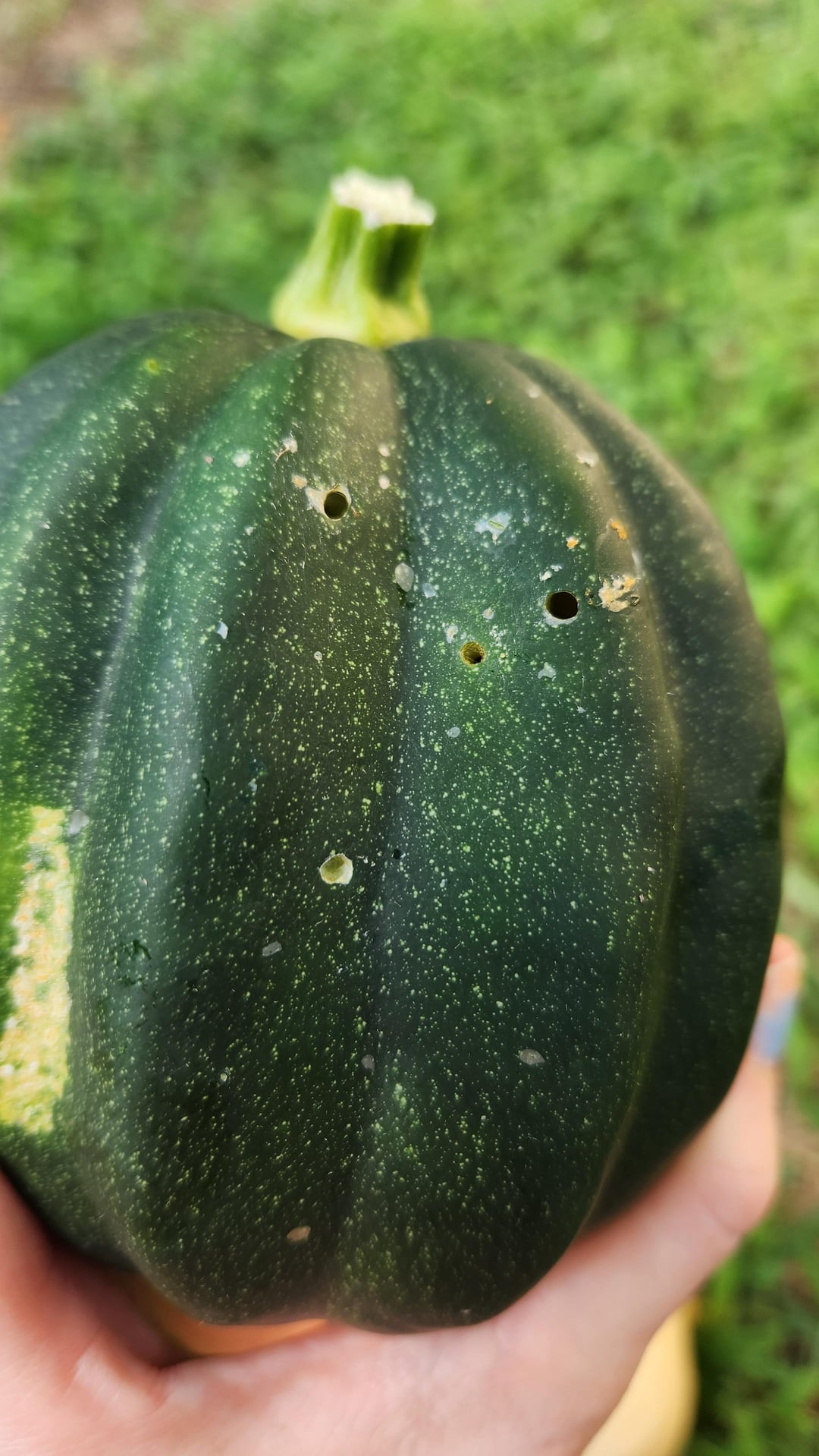 Mmm. Sorry, so late to the chat but I bought a watermelon without really looking at it, found little holes like this. They looked healed but is my watermelon not good any more?