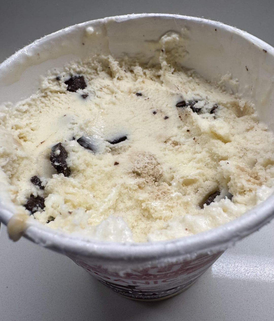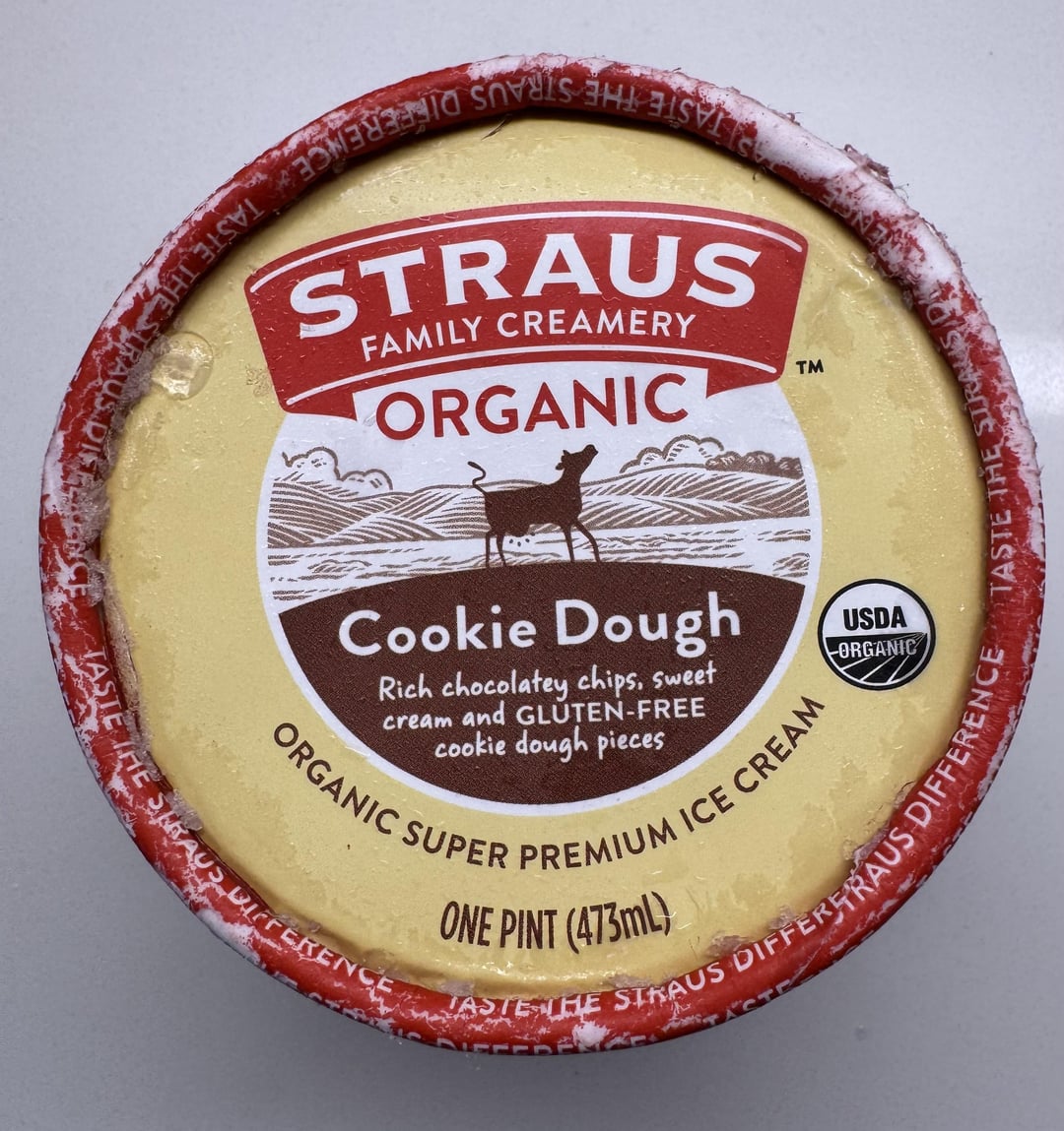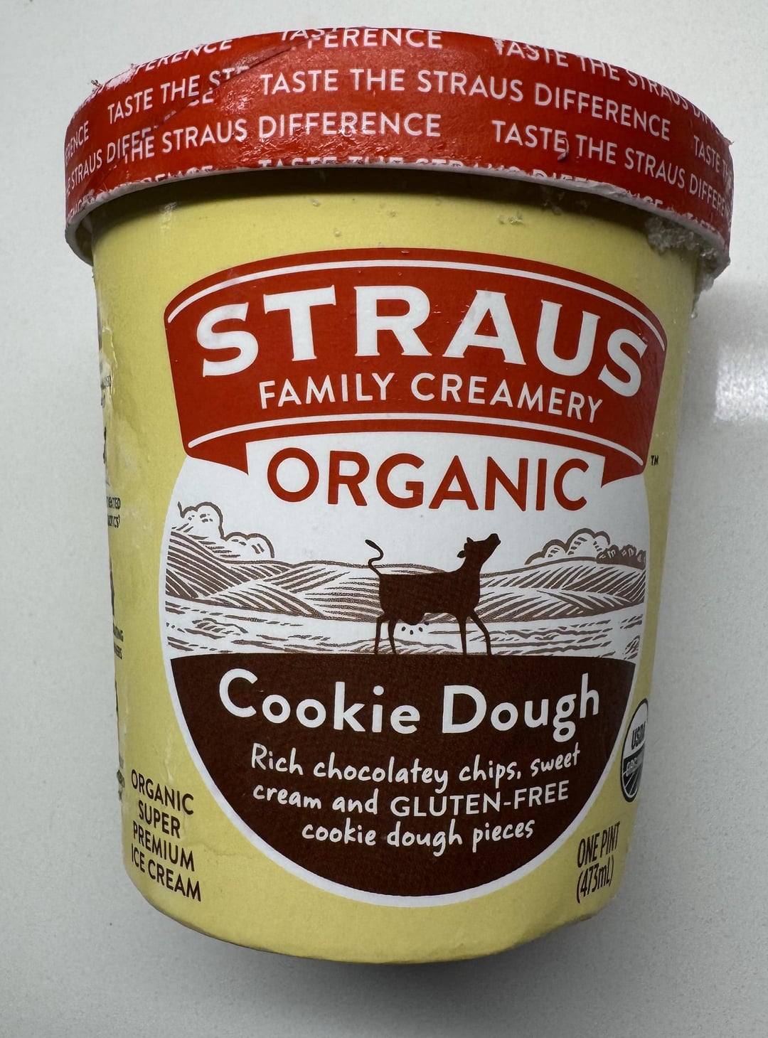 Has rich chocolatey chips, sweet cream and gluten free cookie dough pieces. Texture is creamy! Can see all the cookie dough chunks. Love their milk too which is rich and indulgent. Pure ice cream – no fillers or colors used. Got at Whole Foods.