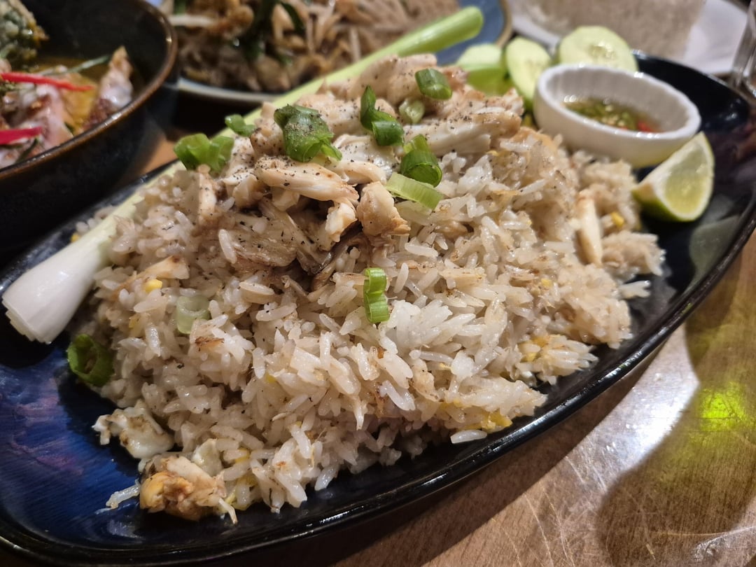 Khao Pad Puu (Crab fried rice, egg, onion and served with spicy fish sauce)