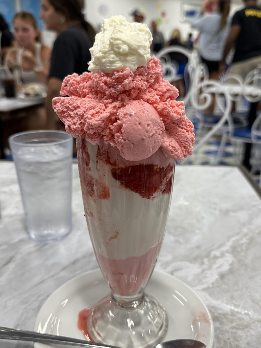 This sundae is a strawberry and marshmallow sundae