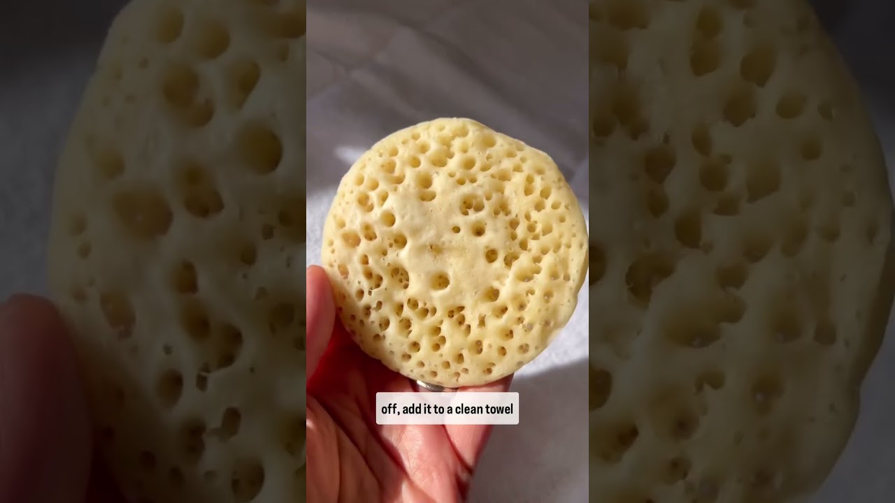 Do you need a foolproof kayaf recipe? I have just that for you. Think of katayif as a celebratory pancake like treat that we enjoy during Ramadan and nid. It’s porous and fluffy and typically stuffed with cheese, nuts or ishta. To make the batter is quite simple. To a blender, you are going to add fine semolina, allpurpose flour, baking powder, yeast, and some sugar along with warm water. You mix this all together and then you have a batter that looks just like this. I find it to be a little bit looser than your typical pancake batter. Ladle about a/3 of a cup of the batter into that perfect round shape into a non-stick skillet. As you wait, you’ll notice all these pores appear to the top. Once it’s completely dried off, add it to a clean towel while you make the rest. You want the bottom to be golden brown just like this. At this point, you are ready to stuff your katay. In this family, we love a cheese katay. So, I am stuffing mine with sweet cheese that I add a little bit of more sugar to and some cinnamon. Now, a tip is to not add too much cheese to the edges so you’re able to close it and it doesn’t ooze out. I like to air fry mine for about 6 minutes, 3 minutes each side at 400° F. Go ahead and dip it in a simple syrup or add a drizzle of honey if you prefer and enjoy this