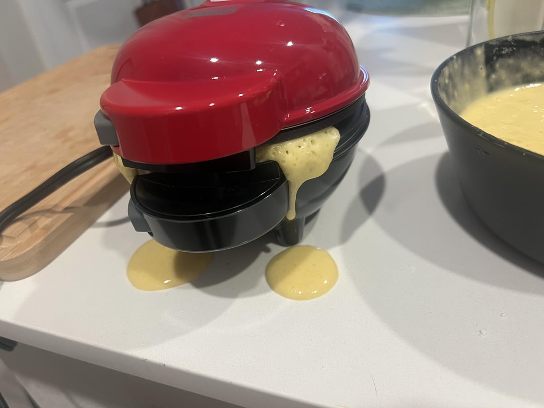 Some real life for ya, meal prepping isn’t always pretty! I’m so bad about overfilling the waffle maker. Might try less milk next time to see if thicker batter helps!