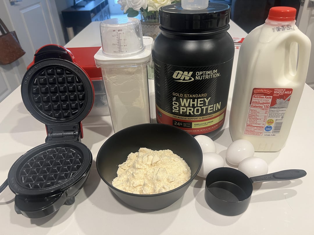 Here is a [link](https://linktr.ee/thewholeprep) to my Linktree with some of my favorite kitchen items. The waffle maker & protein powder are from Amazon and linked on there if anyone wants to try out the waffles.
