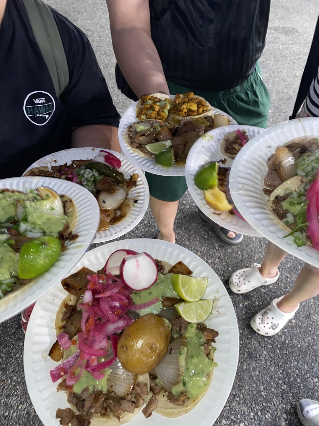 My cousins are visiting from Canada and of course I had to show them tacos! I got the suadero and Al pastor with some grilled onions, avocado salsa, radish and that pickled onions had some good kick to them. And a quick stop to see the skyline !