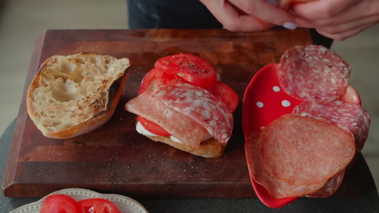 It looks good but why does it just repeat itself? I assume editing error? Sandwich looked good but I'd love to see some pesto or some other sauce on it too to make it a little juicier. And also please just say on screen or just narrate what you're adding and why at each step.