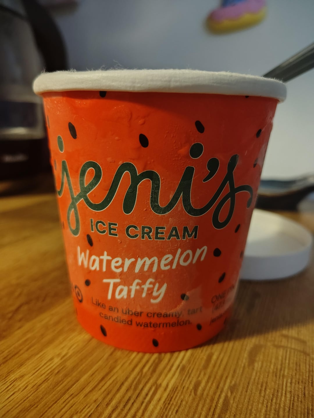 This stuff is phenomenal. Unlike any ice cream I've ever had. It 100% tastes like watermelon Taffy. Kinda reminds me of like a creamy Italian ice or something. It's so good.