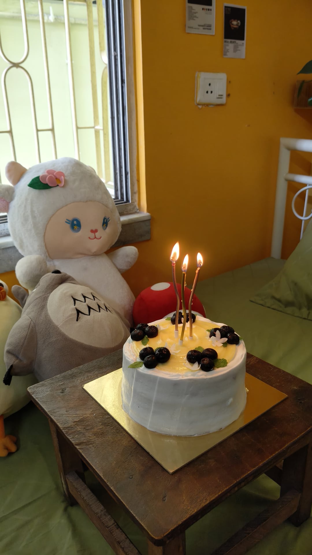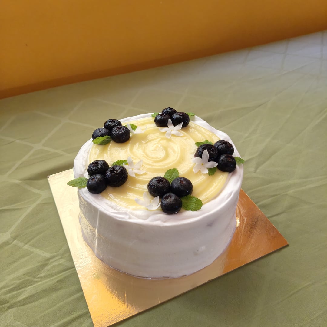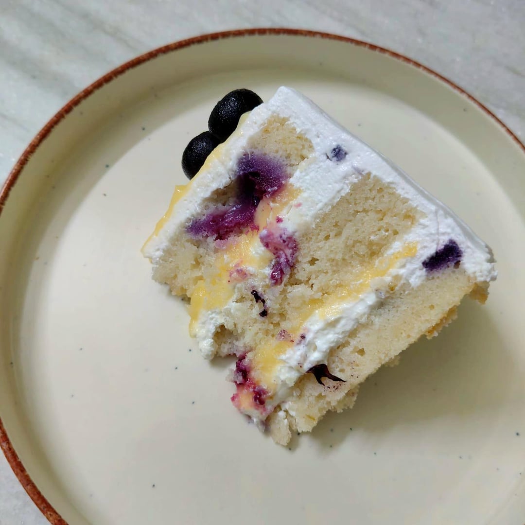 Blueberry cake with a white chocolate filling, lime curd, and whipped cream. She added the blueberries and flowers on top herself. Also got rave reviews for the cake🥰