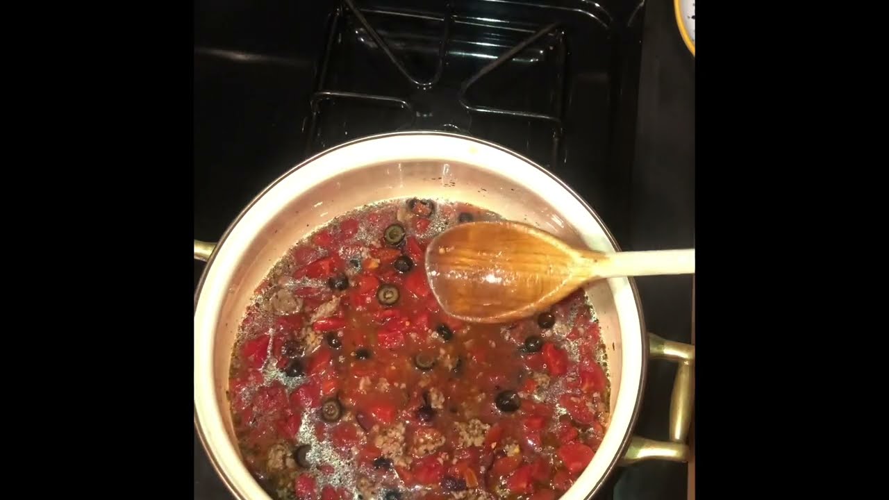 3. Add Beef Broth, Tomatoes, Spinach, Olives and bring to a boil.