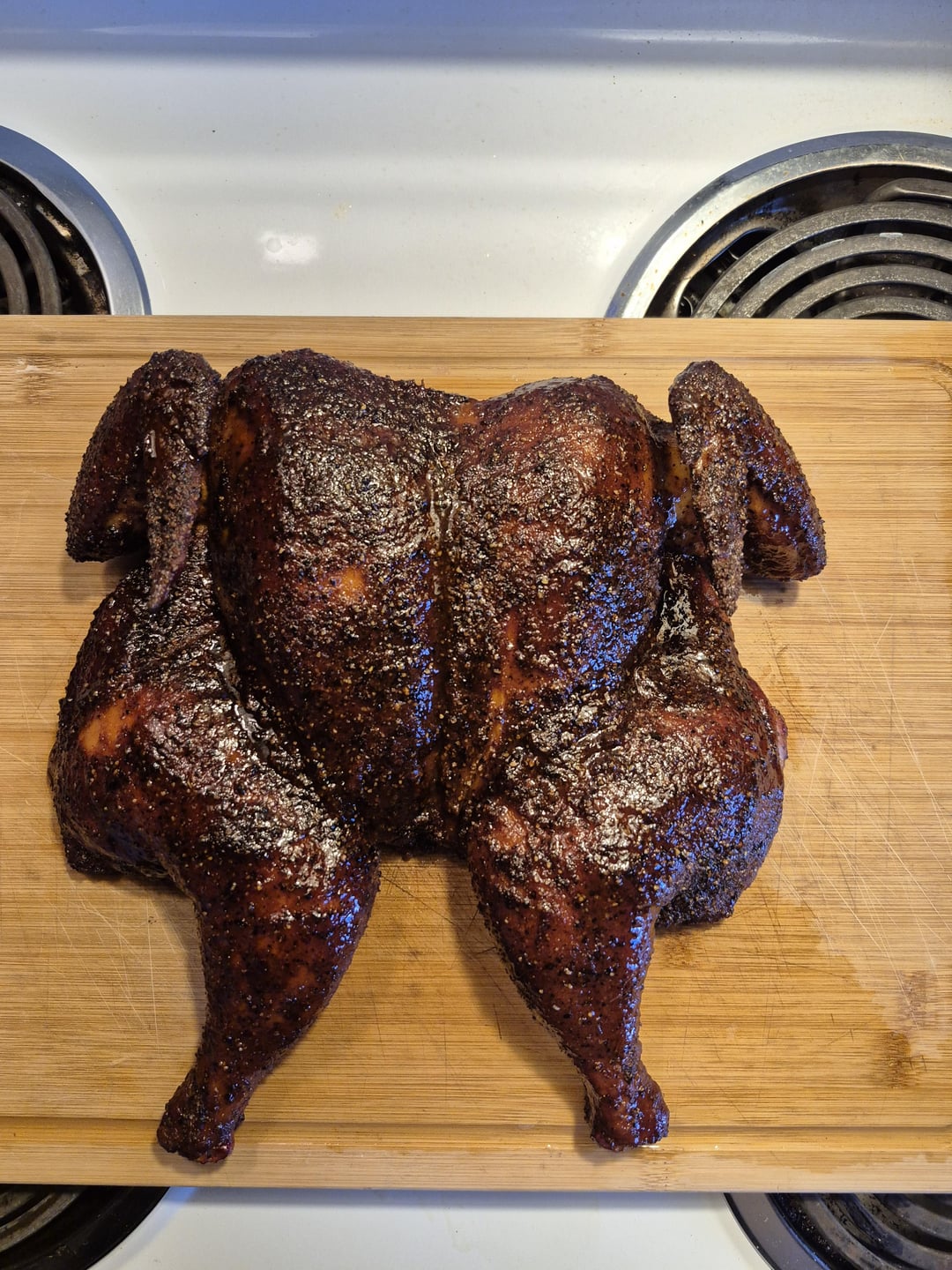 Dave1122-reditt 1 month ago Looks amazing. How did you get your spatchcock chicken skin that dark? Can you give us your cooking sequence and temps?
