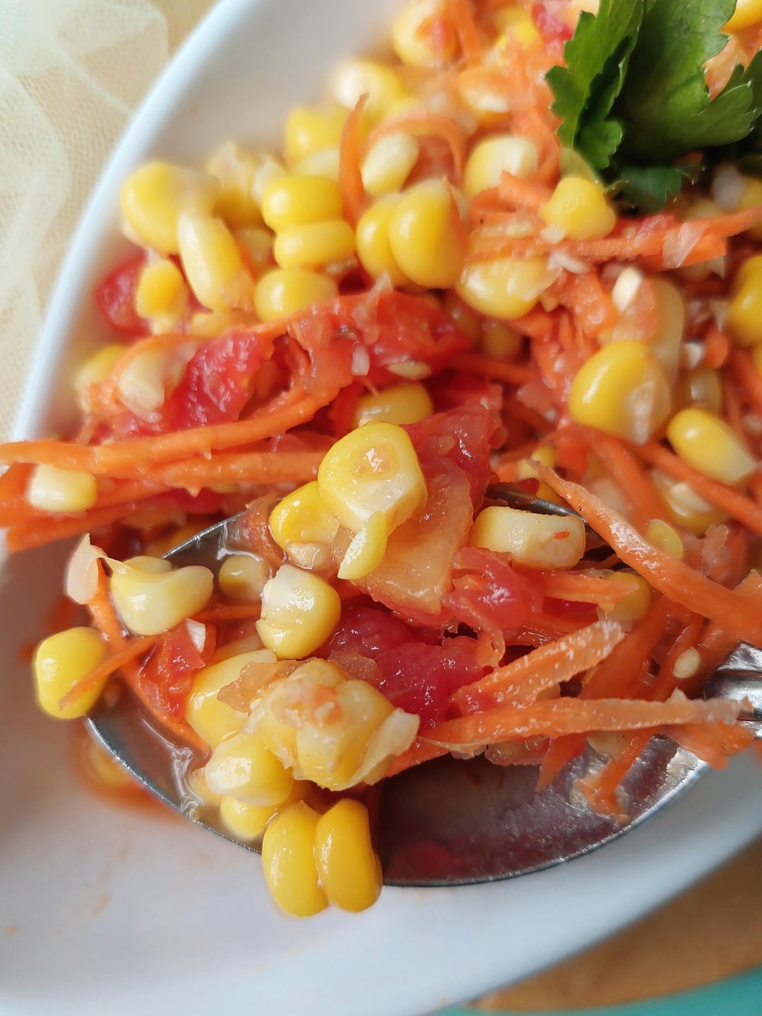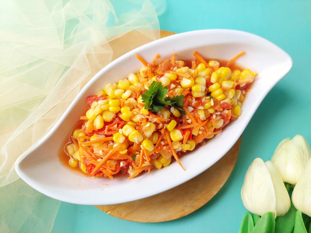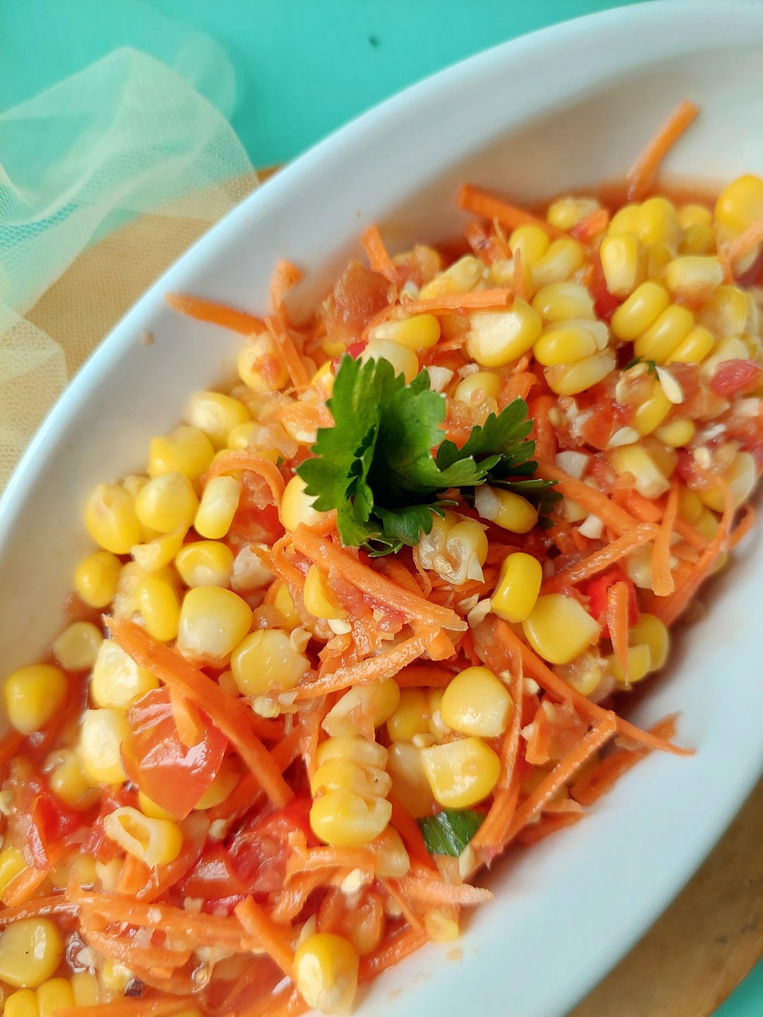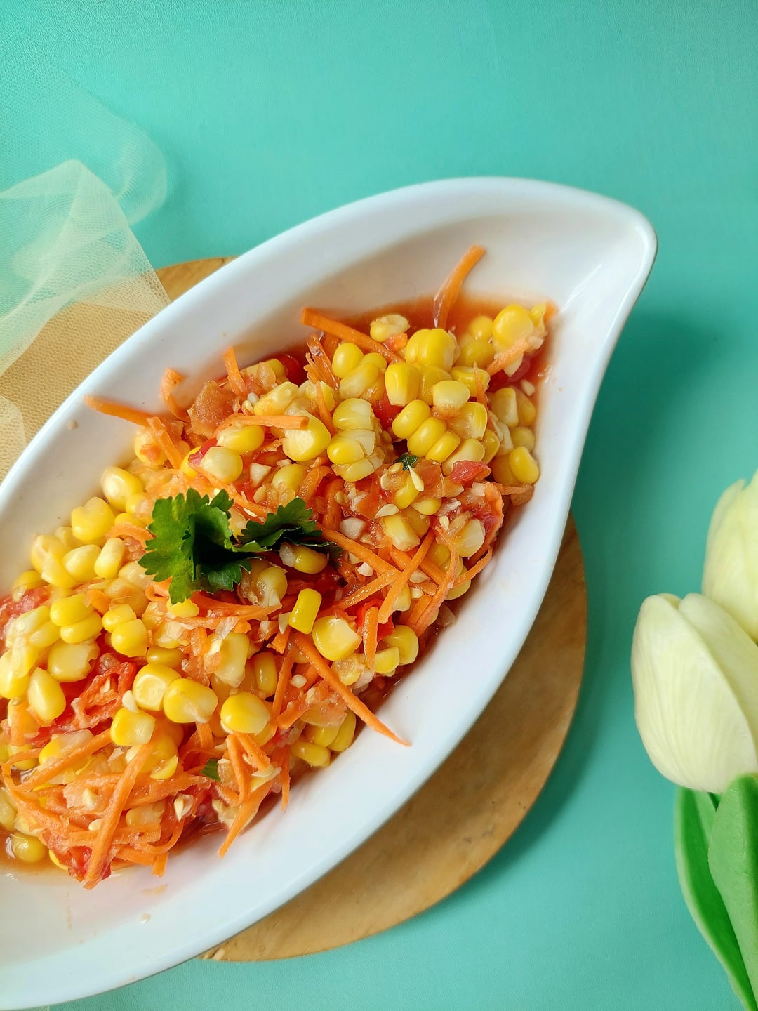 Thai corn salad is a dish made with corn on the cob and a blend of carrots with fresh and sour tomato sauce.
