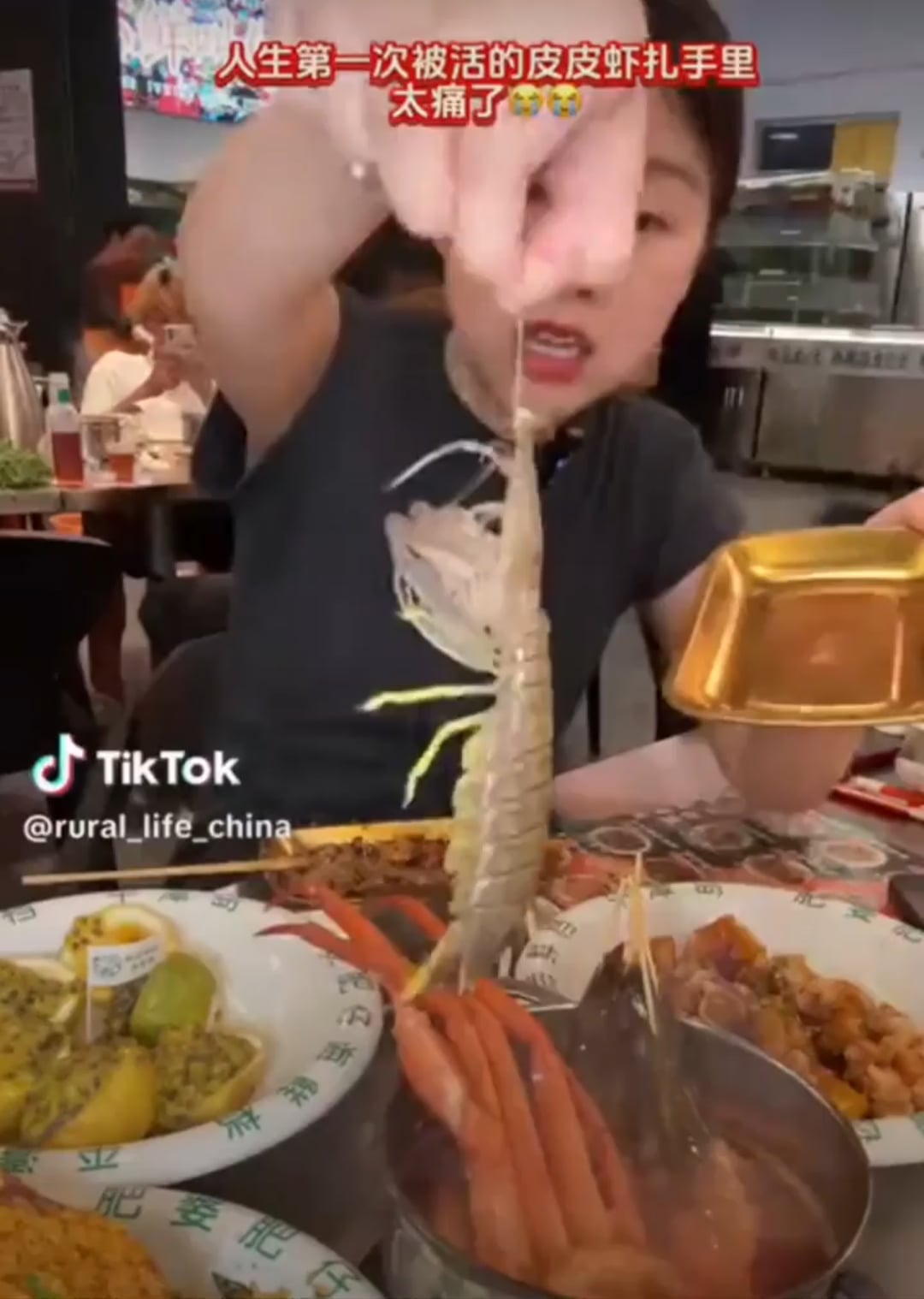 She deserved that. Boiling a shrimp while it’s still alive….I would bite you too