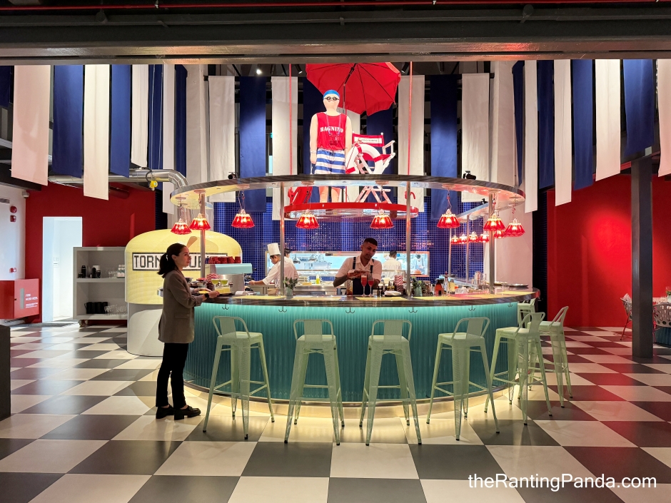 The restaurant’s interior is inspired by the idyllic summer holidays by the seaside and it is evident by the classy use of colours in its space from the main dining hall to the bathroom.