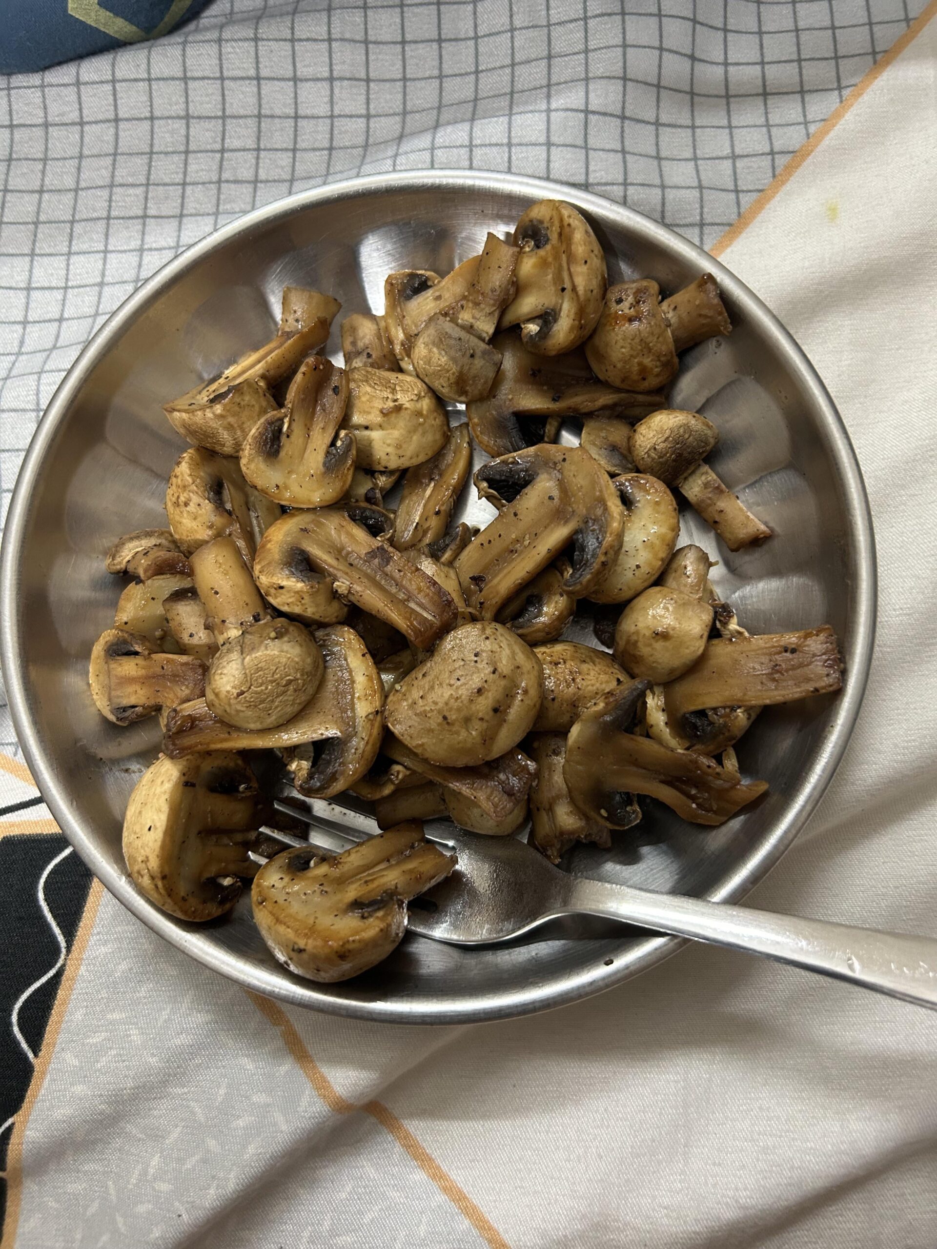 Button Mushrooms are my go to whenever I’m hungry and low on cals left, barely 70 cals for 300gm, like it’s crazyy. Yeah I do add veggies but didn’t feel like having them today