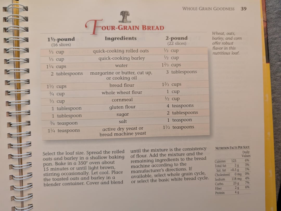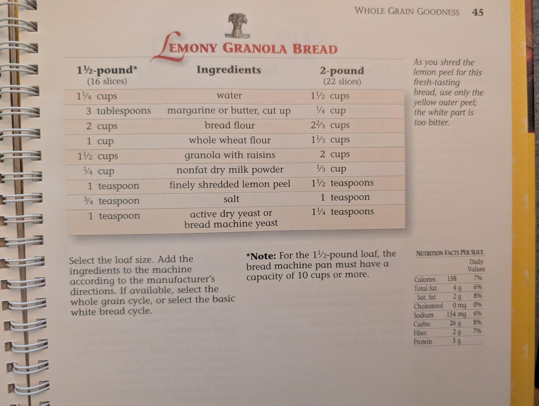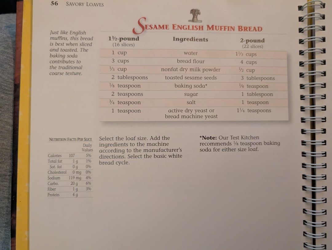Another thrift store find. I made the Sesame English Muffin Bread yesterday and while it’s debatable if the texture is like an English muffin, it’s made delicious toast and turkey sandwiches today. I think I’m going to try the lemon granola bread next.