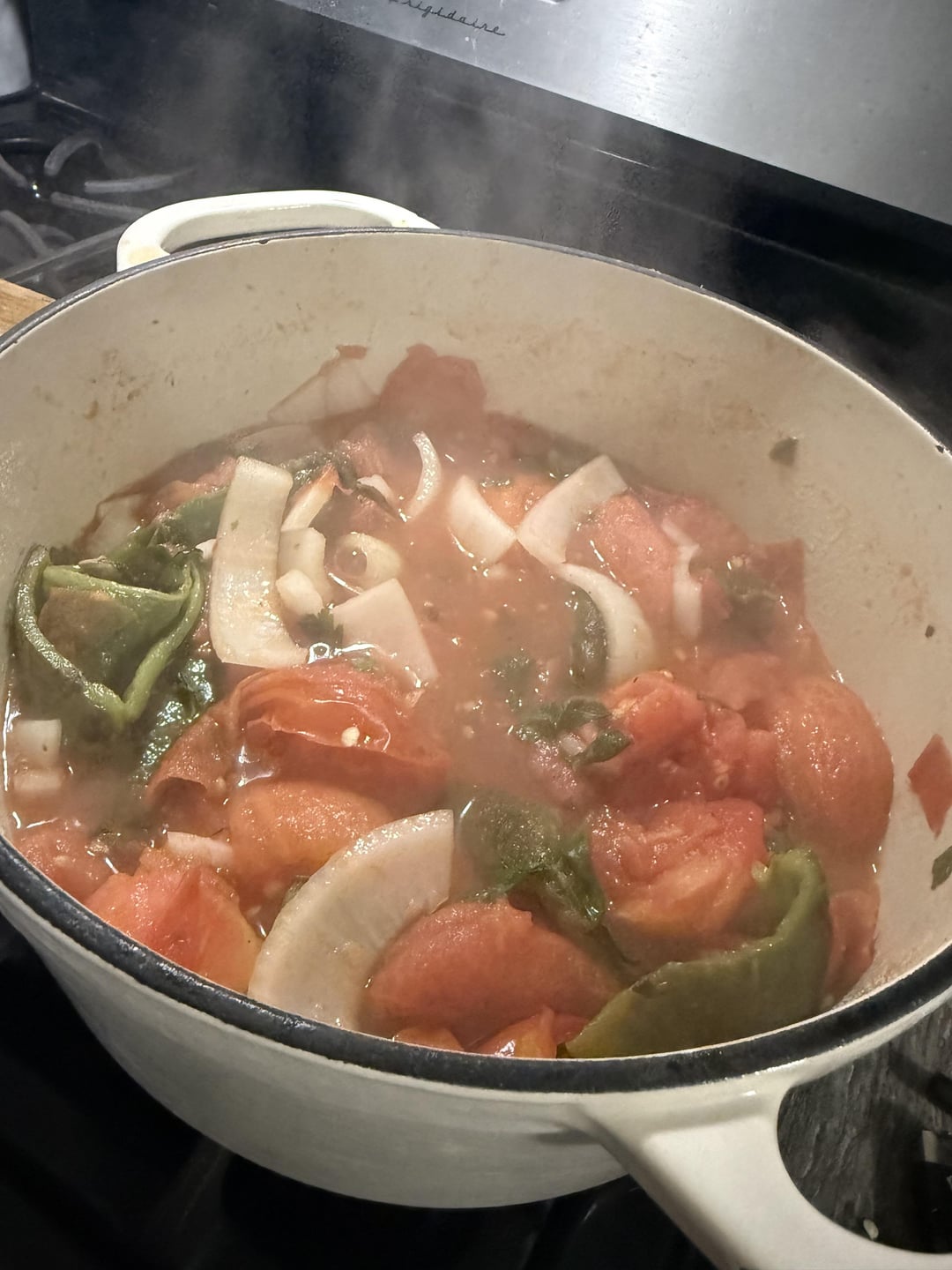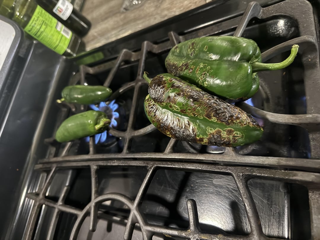 Roast peppers while cooking all the rest of the ingredients, combine them all and blend. And salt lemon juice and lime juice to taste.