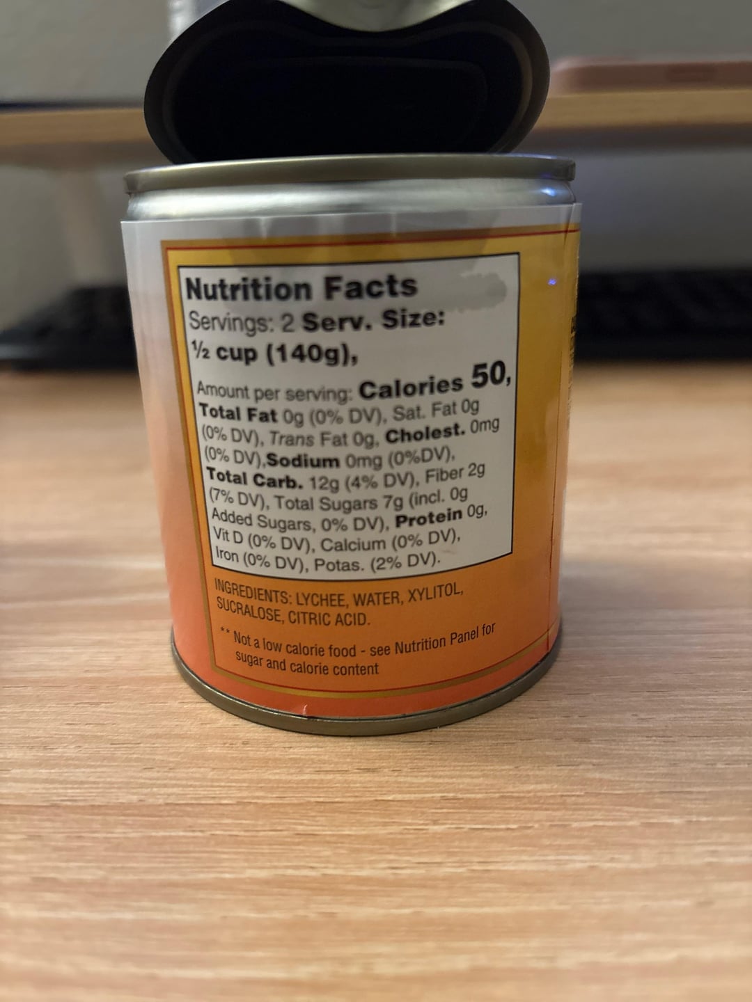 100 cal for whole can – No sugar added lychee