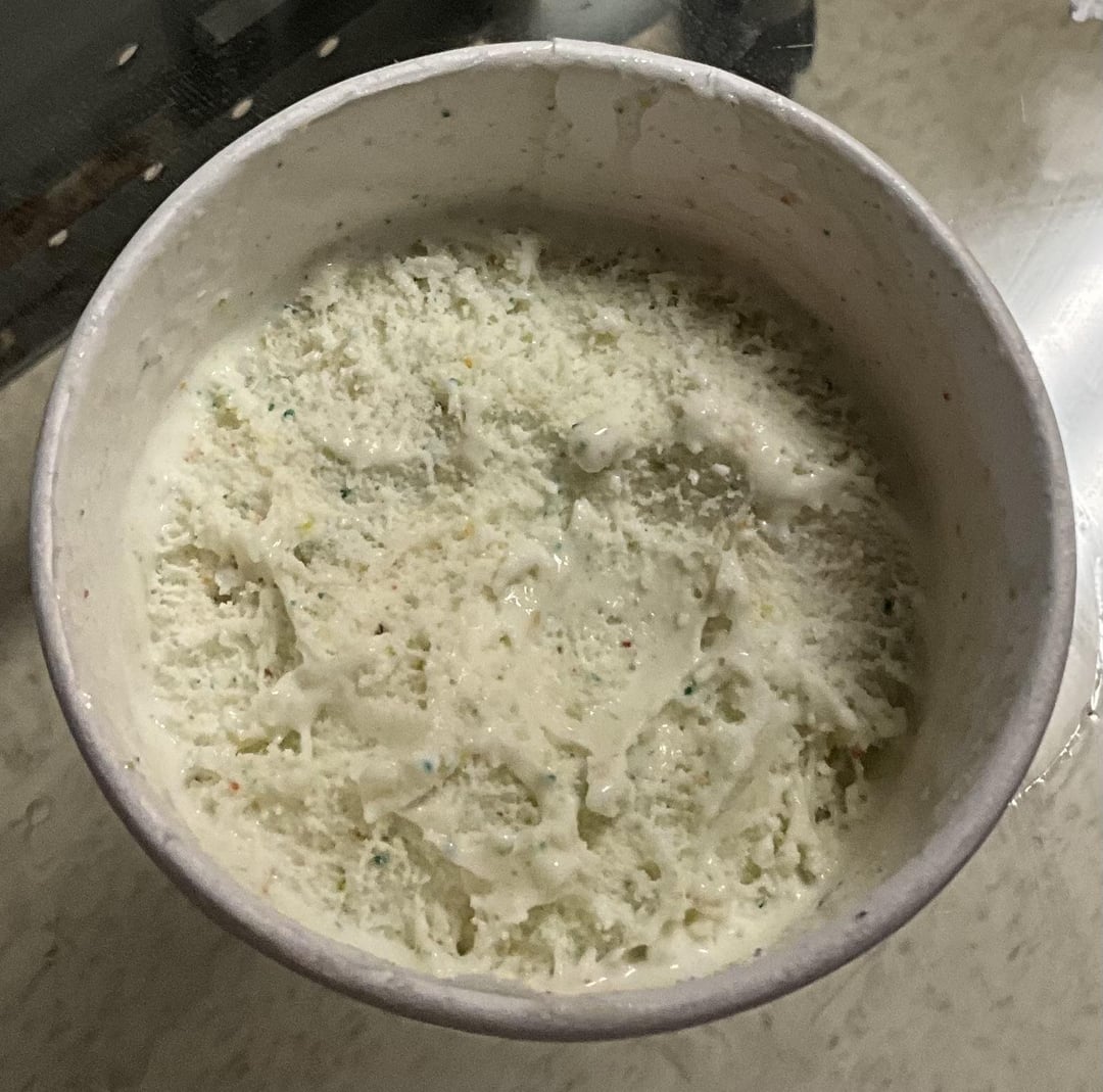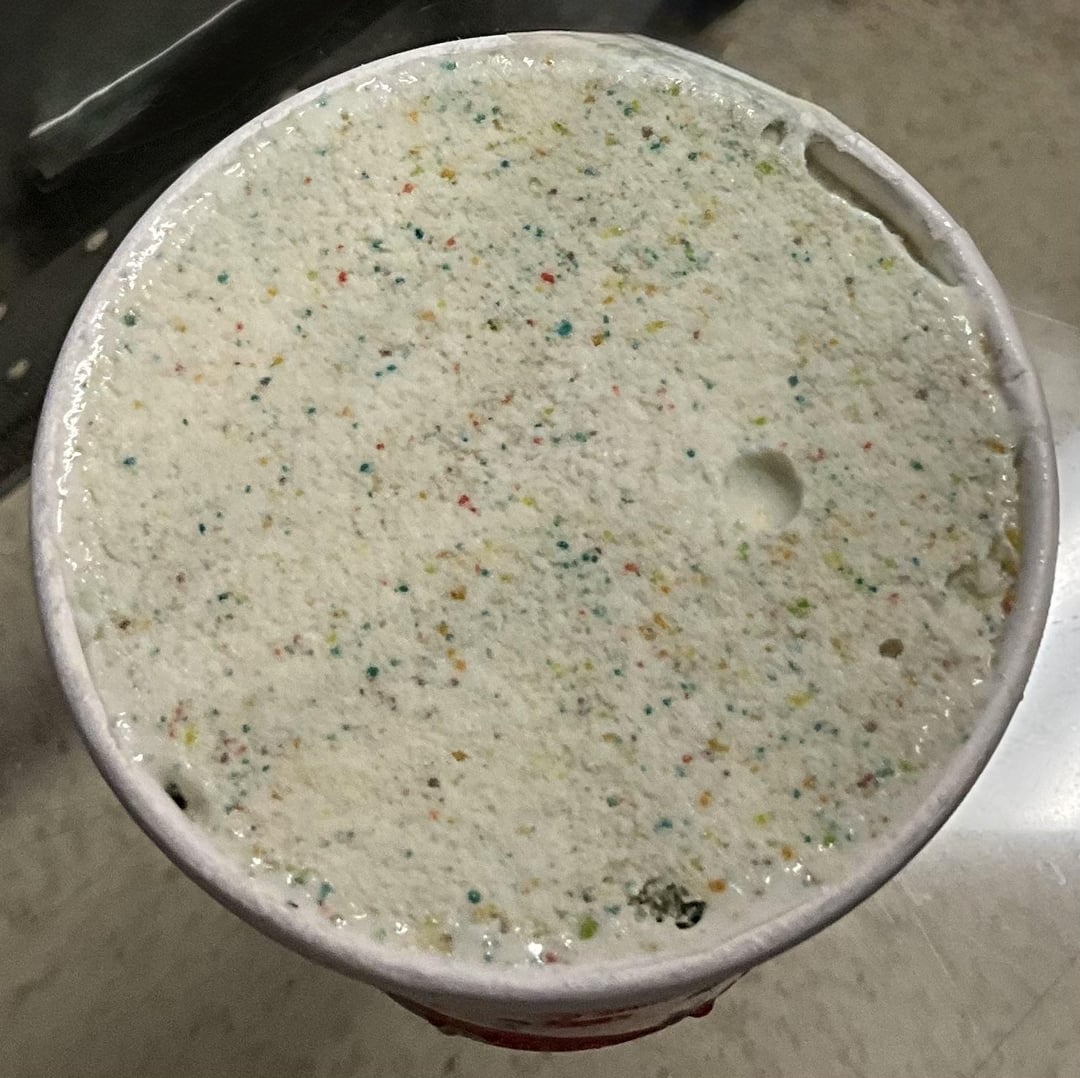 Honestly, I’m quite disappointed. It only sorta tastes like actual Fruit Loops cereal. Like a milder version of it. It doesn’t have that iconic, strong flavor that Fruit Loops is known for. It’s also very airy and soft like soft serve straight out of the freezer. And lastly, the little bits of cereal mixed into the ice cream give it a somewhat off-putting grainy texture. It would’ve been a lot better if it had crunchy, large pieces of Fruit Loops added as a mix-in.
