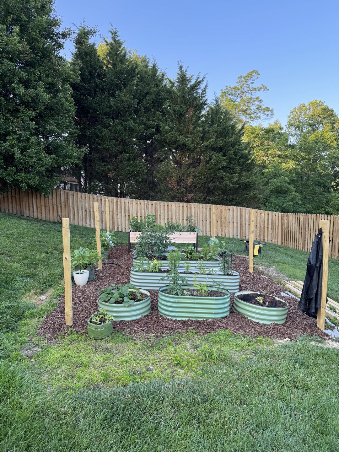 I have those same beds. What’s did you use for stakes and poles for the plants to climb up? Well done btw!