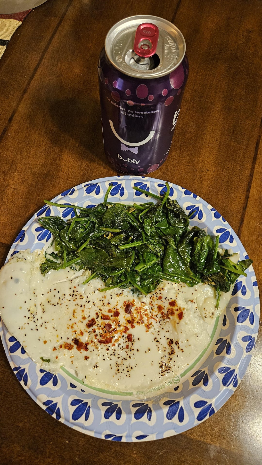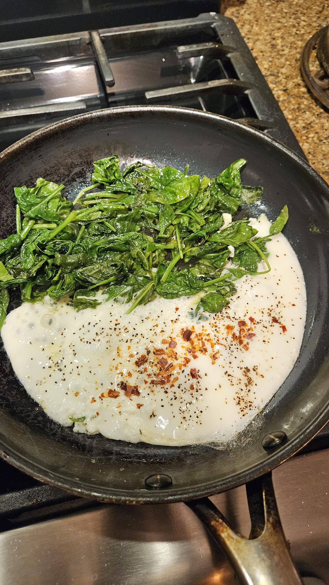 Egg whites and wilted spinach using coconut oil to keep it keto