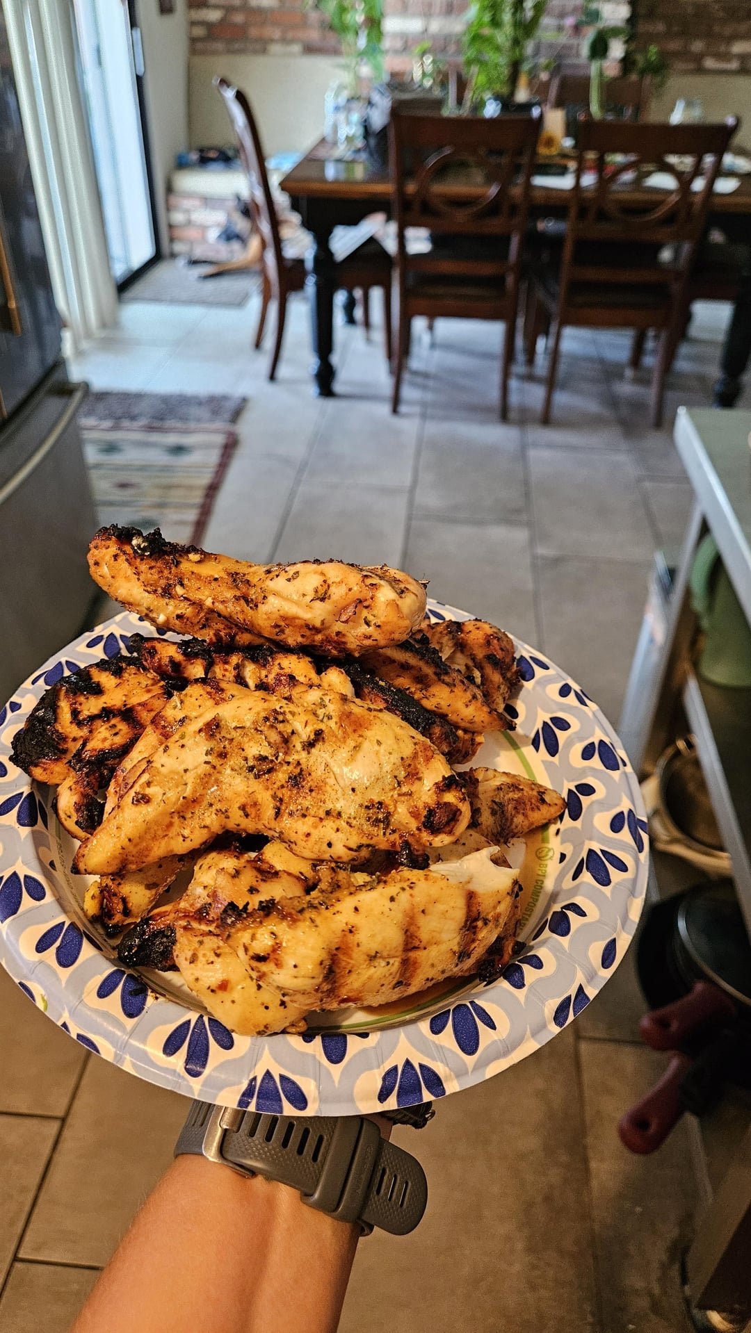 Grilled chicken: marinade chicken in coconut oil, garlic salt, pepper, paprika, and keto Korean BBQ sauce with G Hughes sugar free basalmic salad dressing.