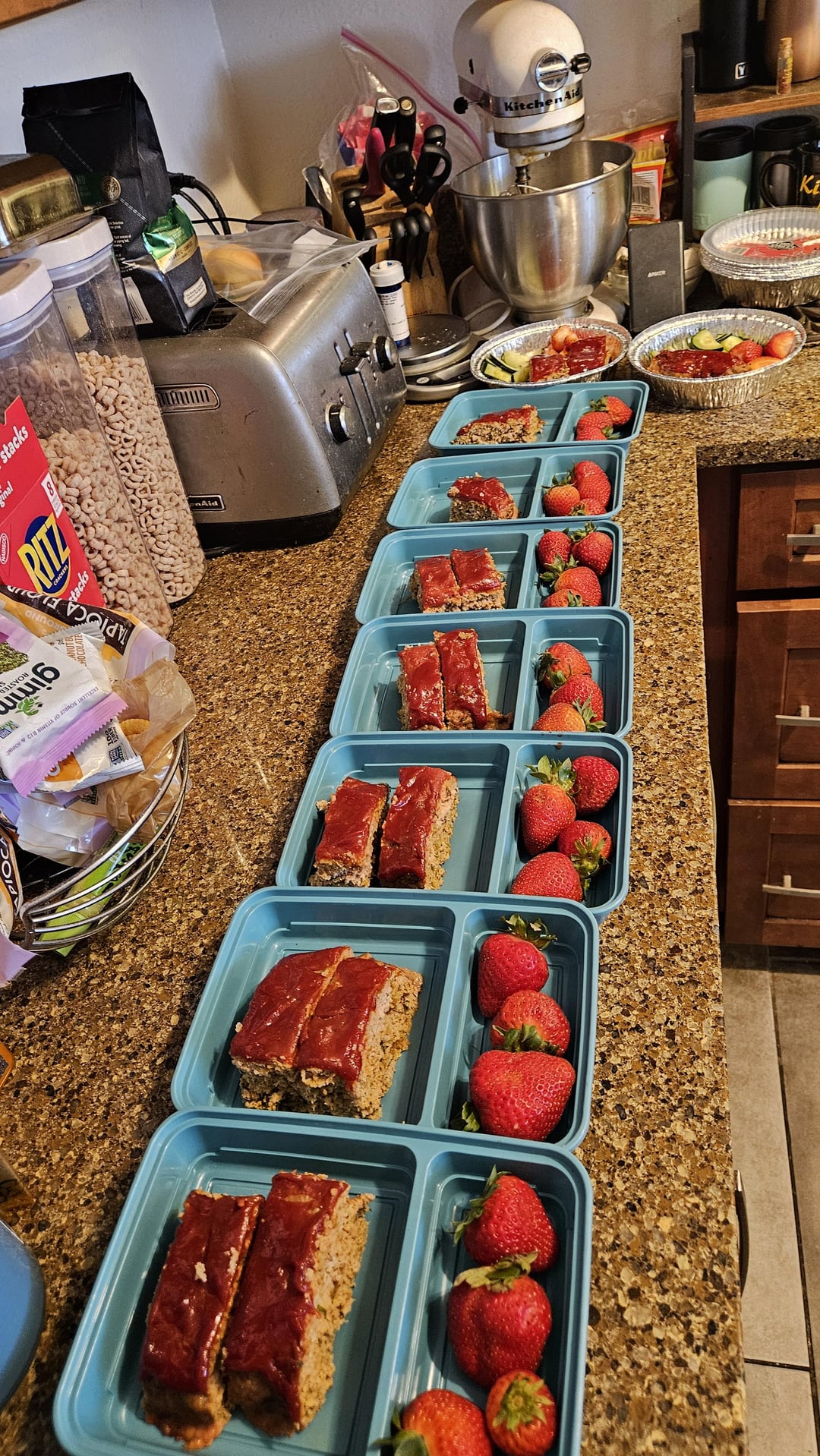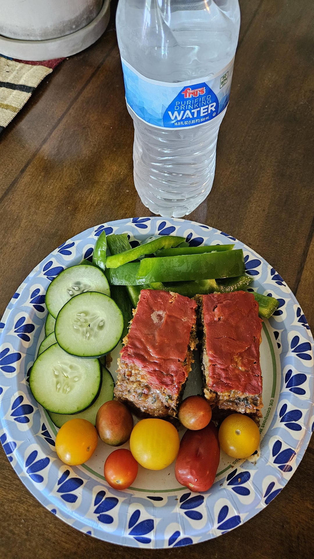 Keto turkey meatloaf w strawberries and cucumber slices