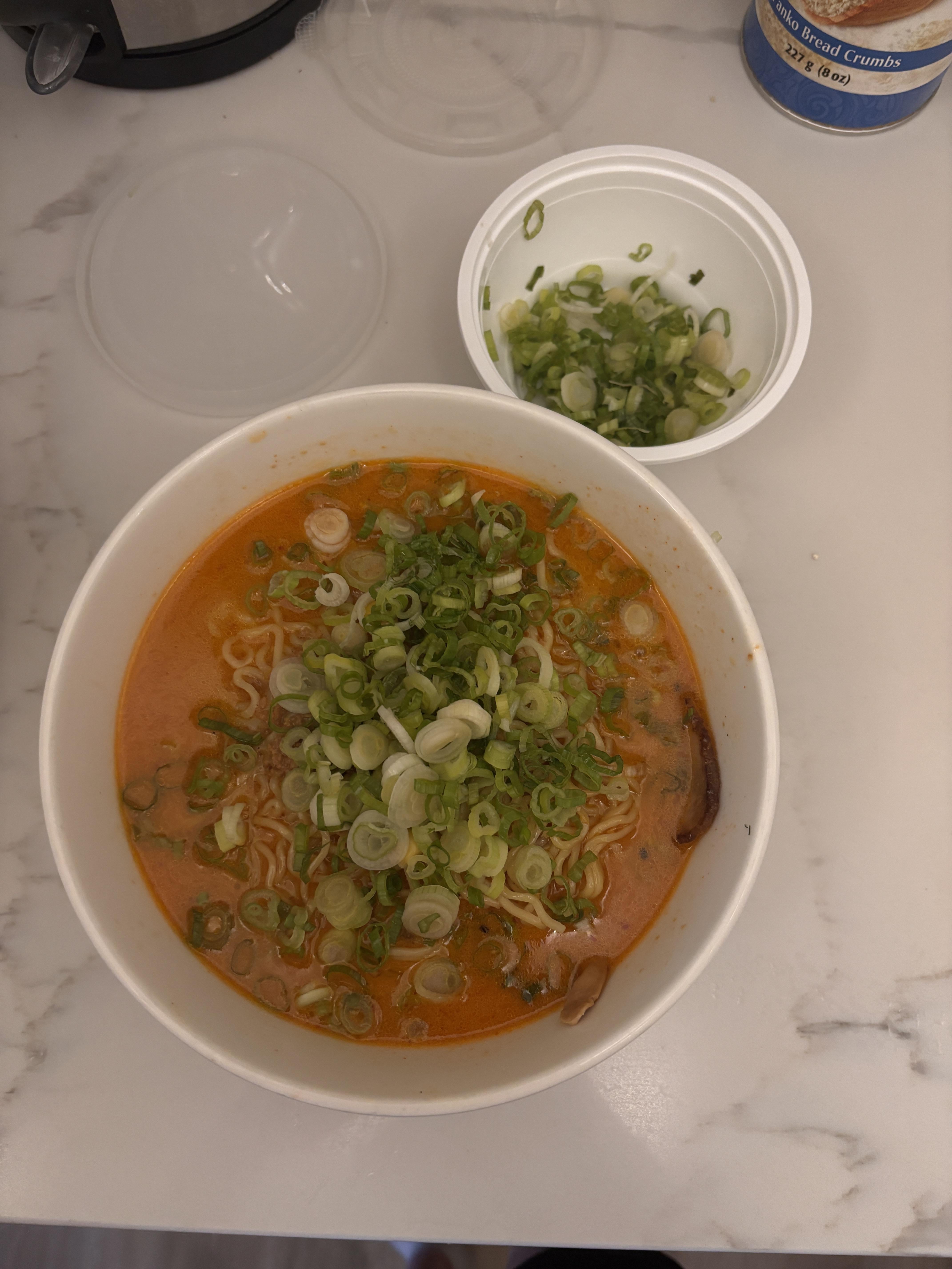 Paid $1.50 for extra green onion. This is after I dumped half of them on my ramenby sanbriego 6 Comments throw667 3 months ago Worth it at twice the price. waves_0f_theocean 3 months ago DUMP THE WHOLE THING YOU COWARD 😤 Sudden_Structure 3 months ago Definitely worth. deborah_az 3 months ago Why aren’t all of the onions in the ramen? Did you save them for the second half of the bowl? Did you scoop them up and eat them with a spoon? retailguy_again 3 months ago That looks like $1.50 well spent. I would have used them all, but you do you. Looks tasty! Teddybur88 3 months ago Well there’s your problem! You stopped at HALF.