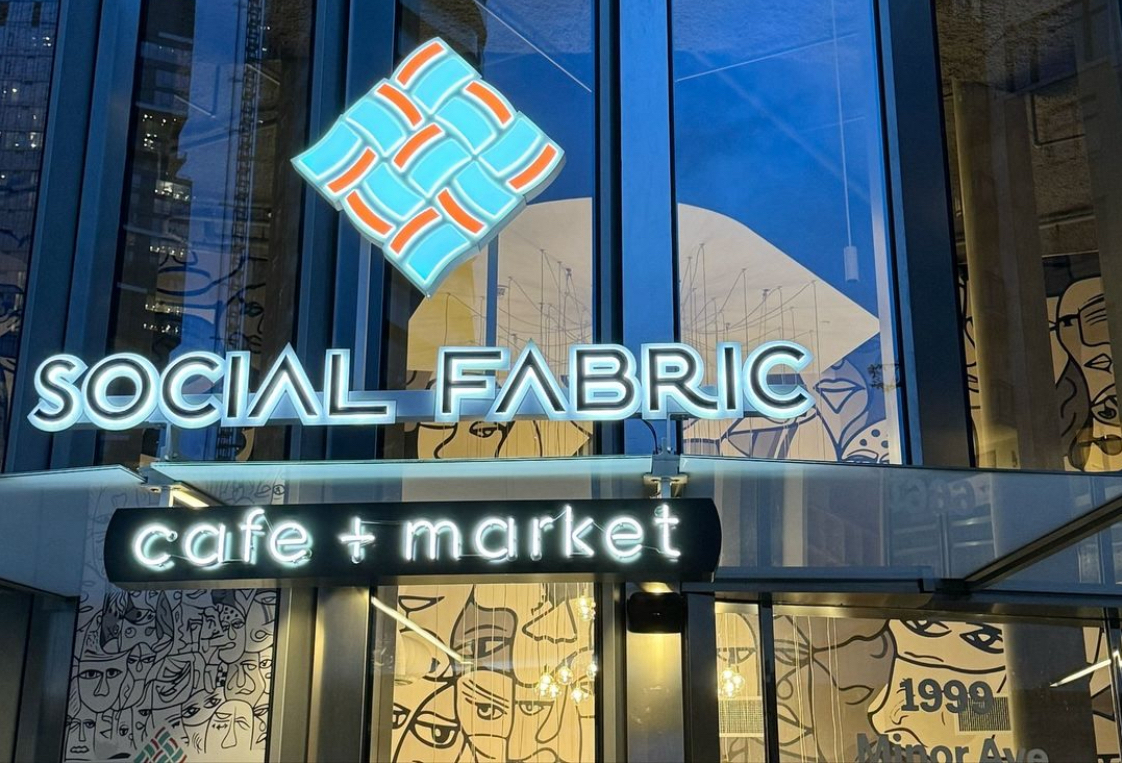 The 1,250-square-foot Social Fabric Café and Market space is located on the ground floor of an award-winning high-rise and will be open daily from 6 a.m. to 7 p.m. The menu offers a selection of coffee and food options, along with a market that features a range of prepared gourmet foods and drinks.