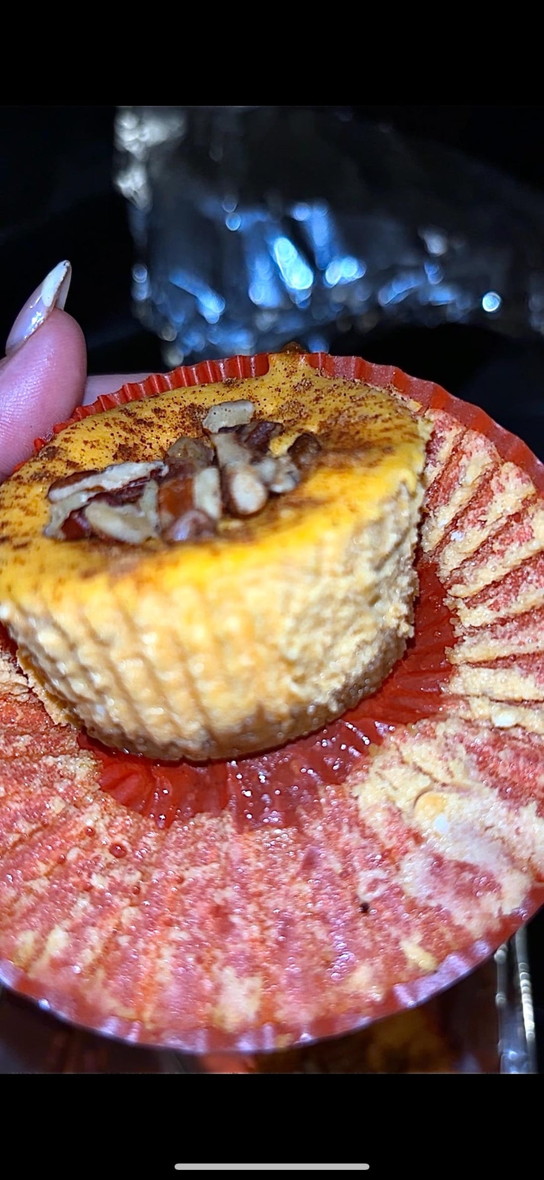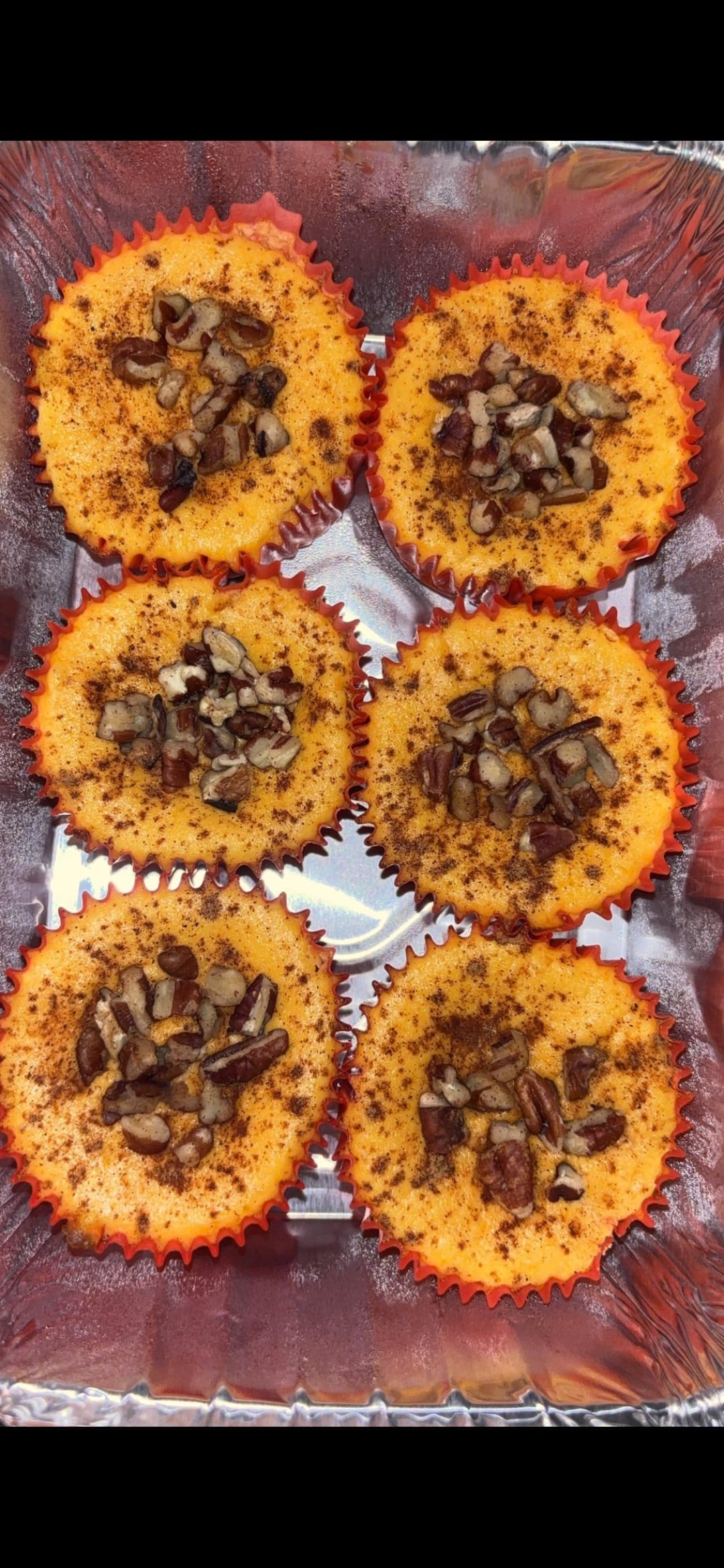 5. Top: Sprinkle chopped pecans and a light dusting of pumpkin spice over each.
