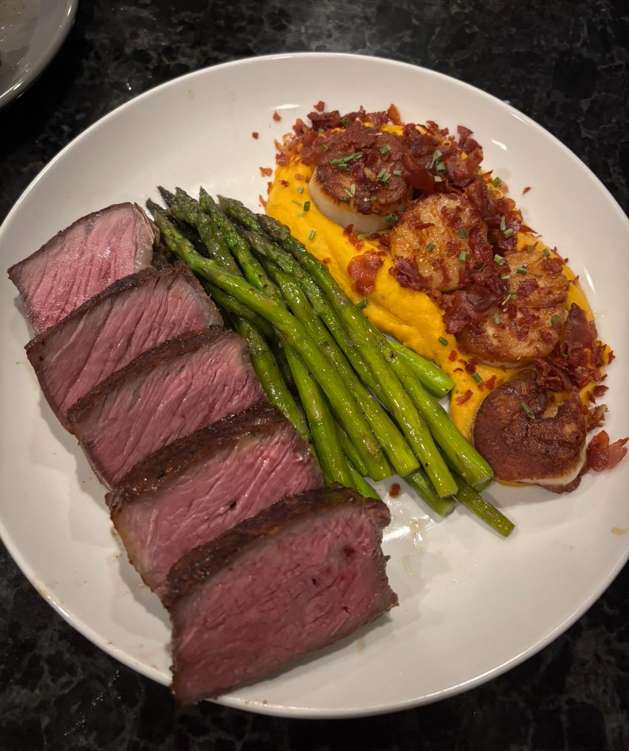 I know we’re supposed to be focusing on the steak, but the sear on those scallops is damn good 👍