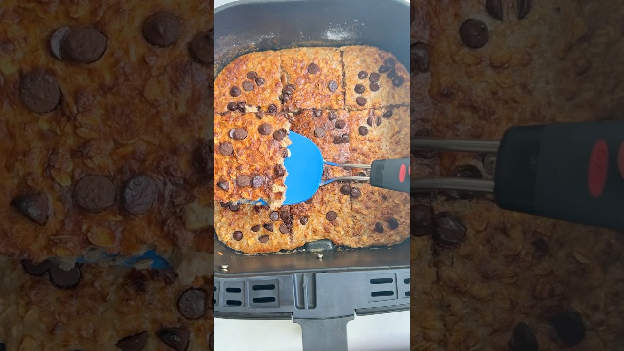 4. Sprinkle the chocolate chips on top and air fry for 15 minutes. Allow to cool for 5 minutes, and then slice into 9 or 12 squares.