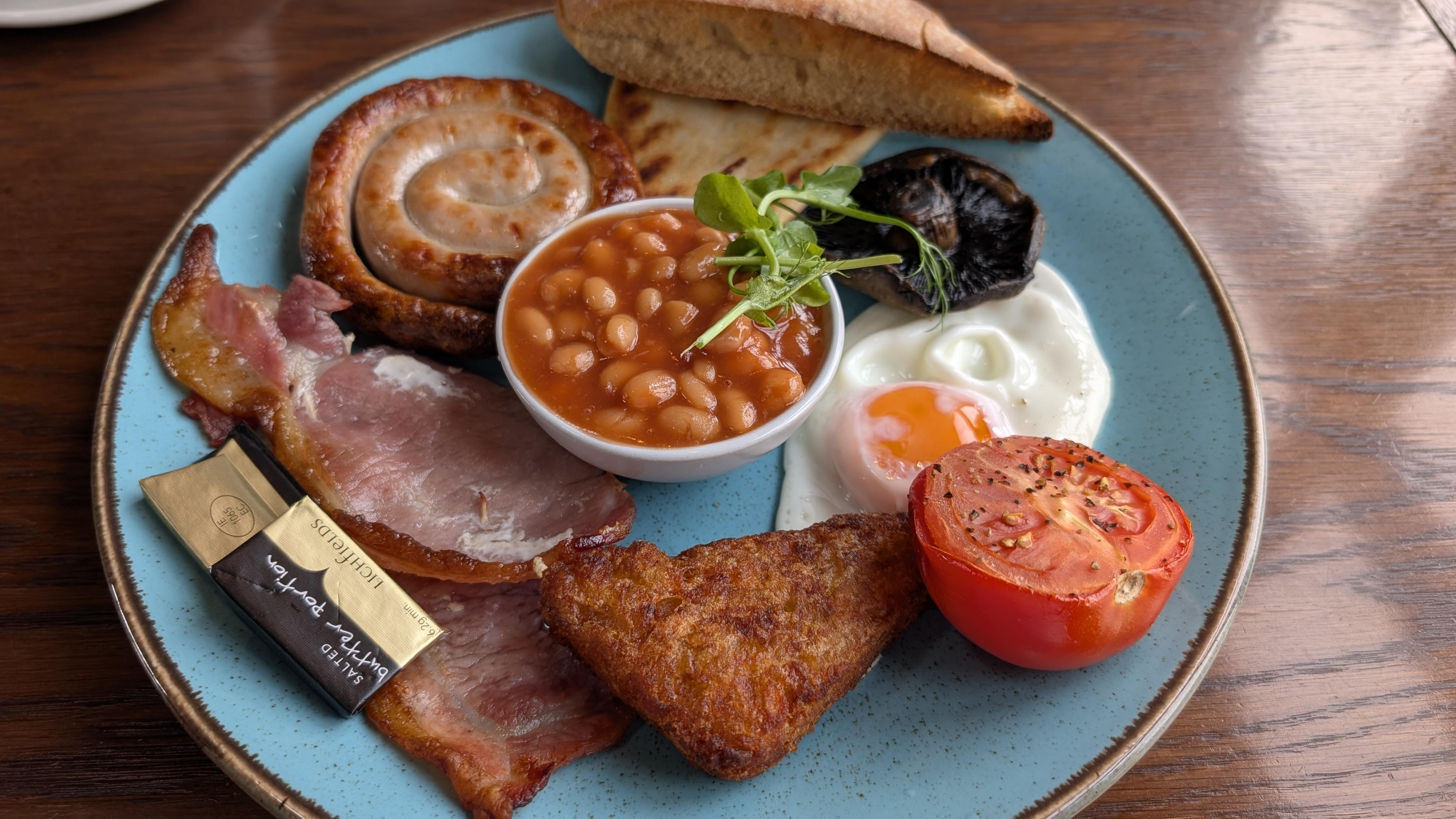 Farmers breakfast, £13.95 with tea, Orton grange, Dalston