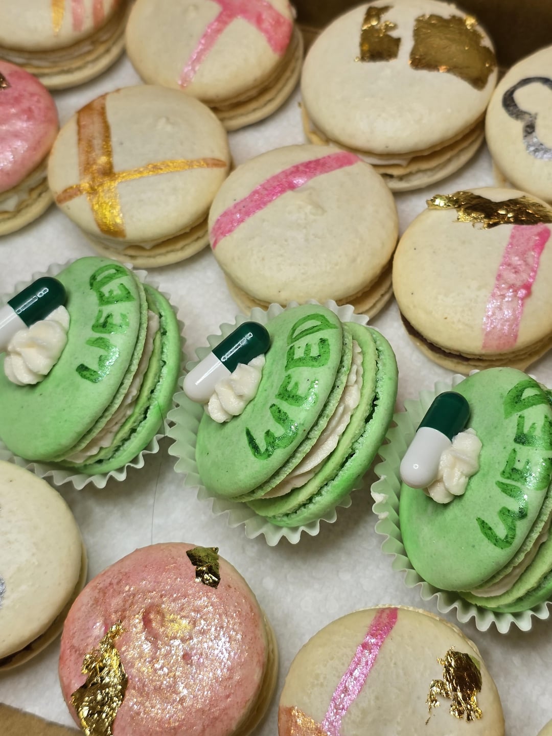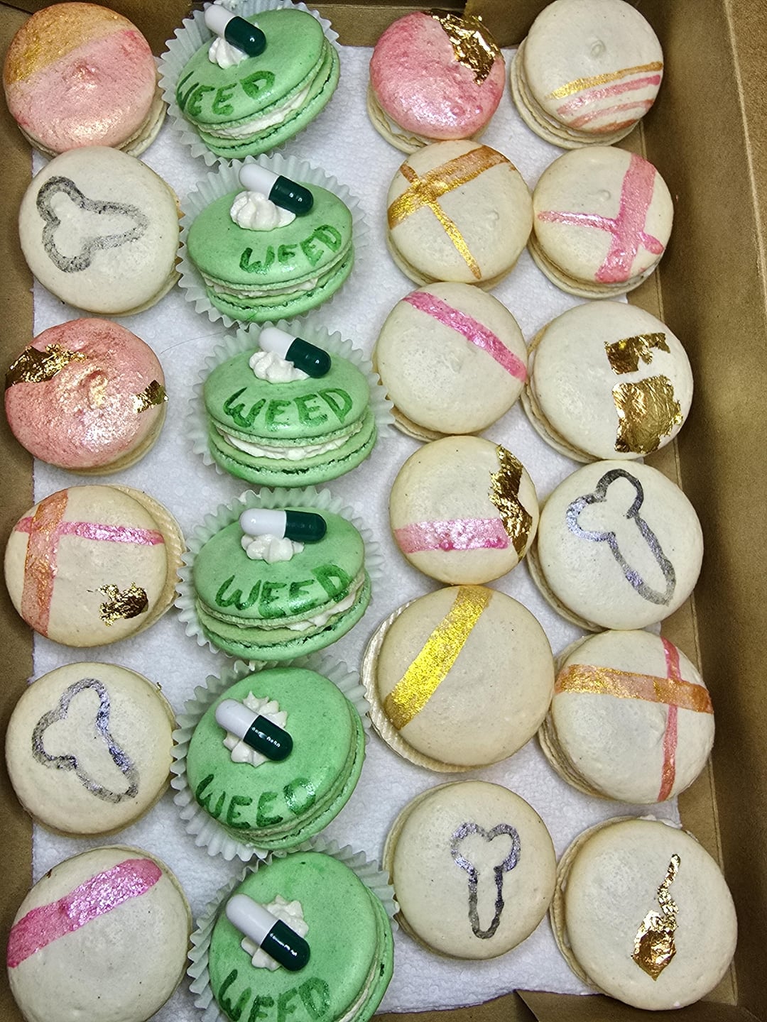 A batch I made for my birthday party tomorrow 🥳 The box consist of Vanilla shells with vanilla butter cream frosting, topped with a 5mg THC oil capsule.