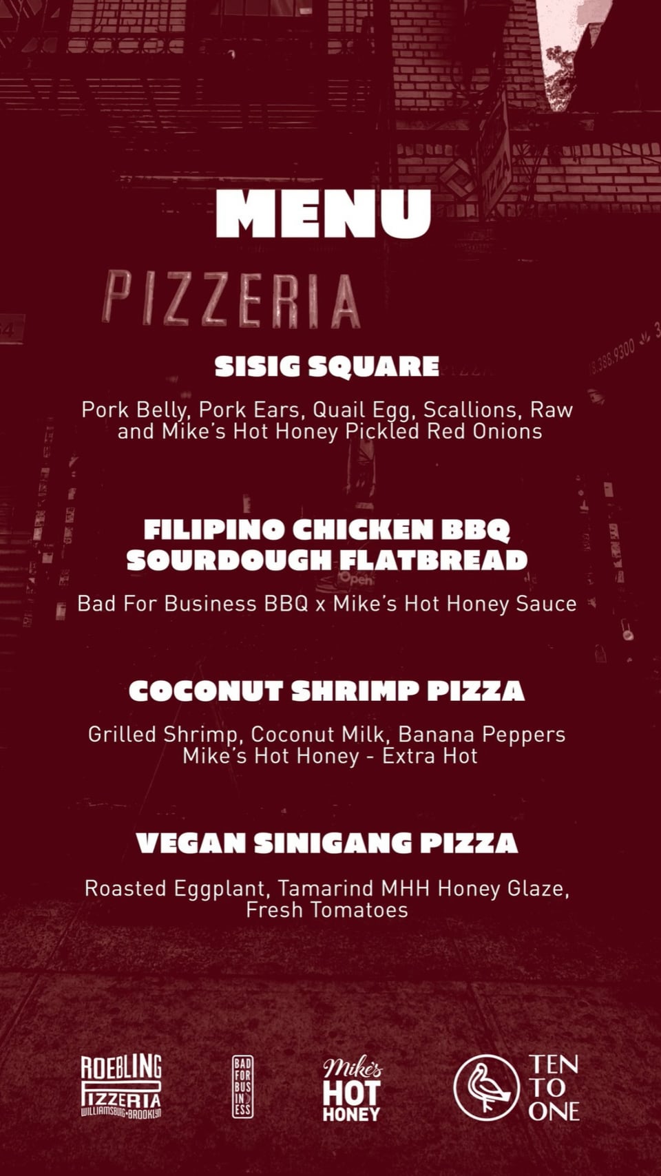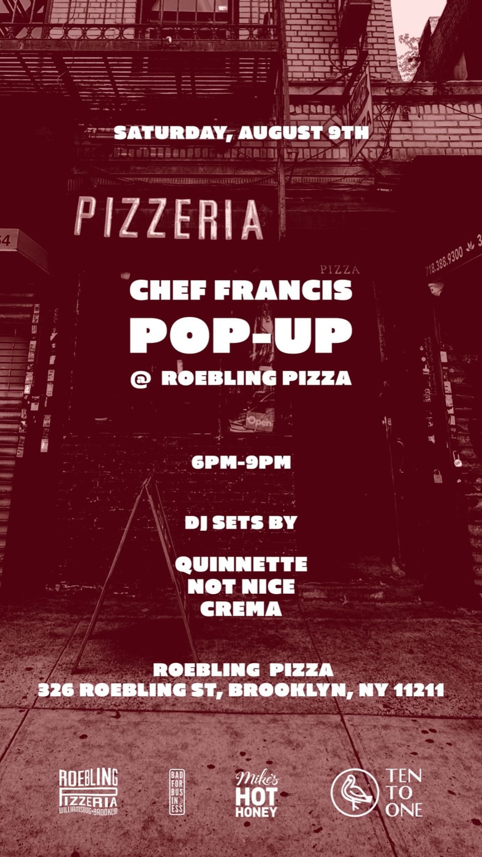 Event is hosted by Roebling Pizza, Chef Francis and Mikes Hot Honey.
