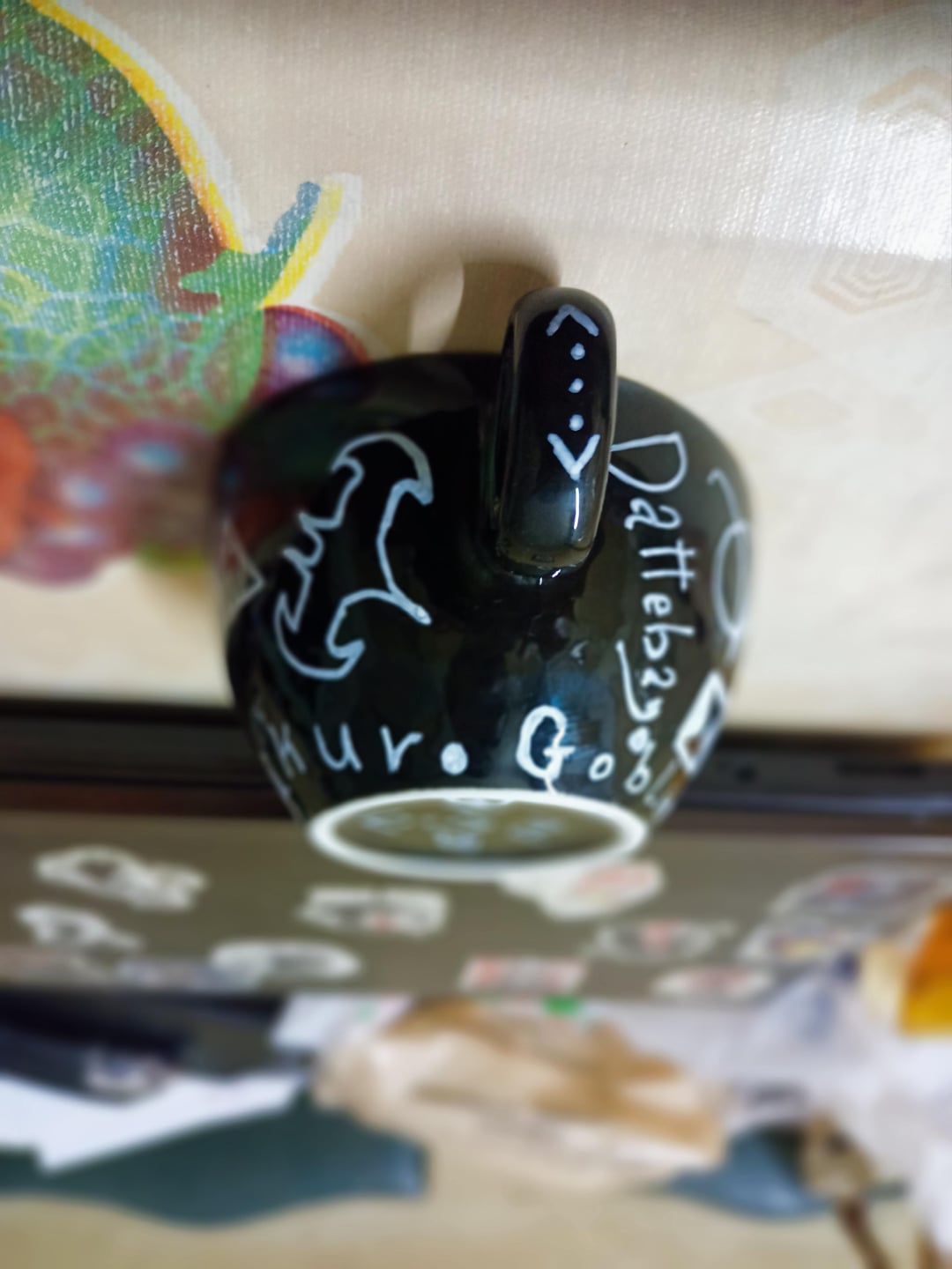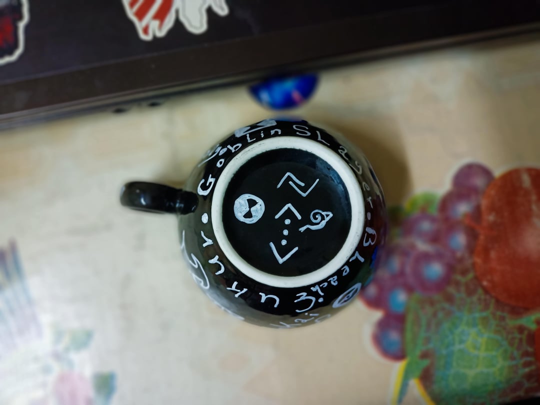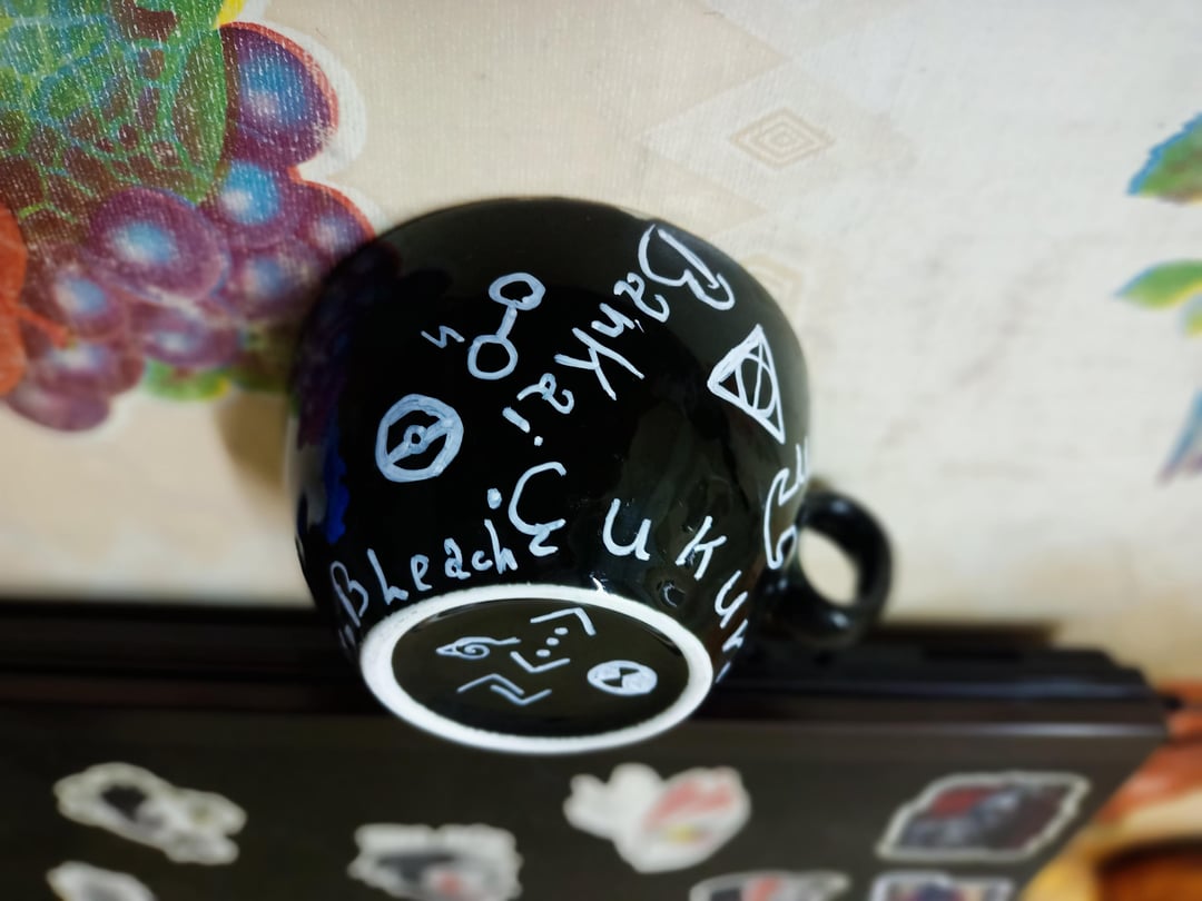 Bought a new black mug , so ofc i had to put all my favorite shows and logos on it 🥀by Egyptian_Grim Dining and Cooking