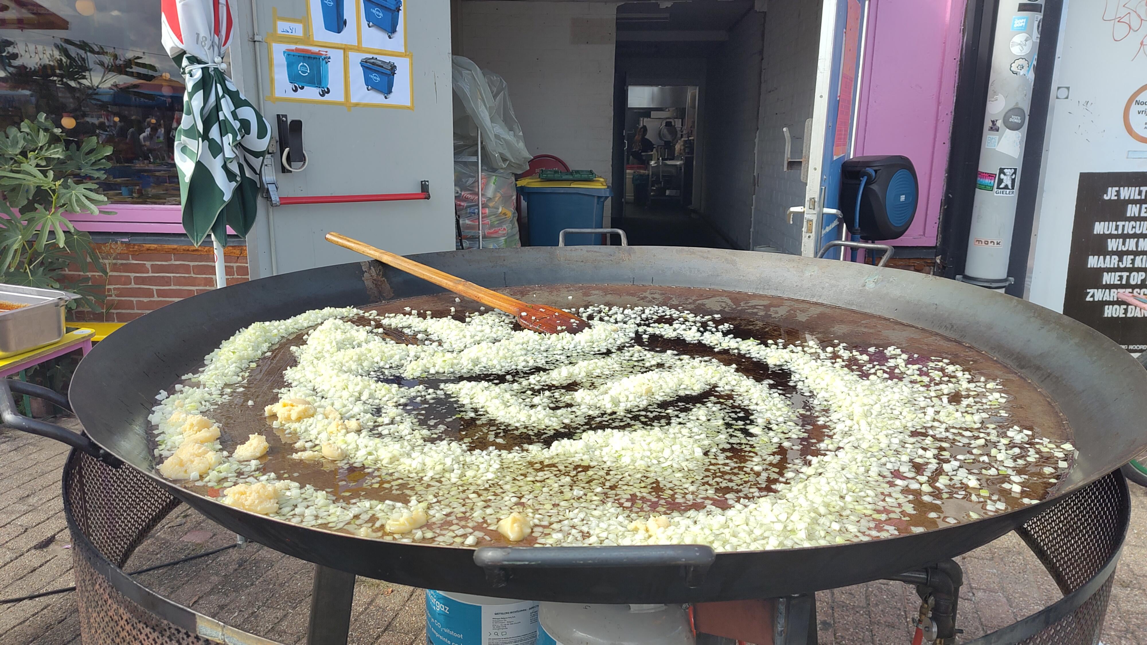 Onions cooked in chicken fat; first stage of preparing Nasi Goreng (Indonesian fried rice). Yes the final fish was excellent after they added rice, chicken, veg and spices but man I will never forget that initial waft as those green gods hit the pan.