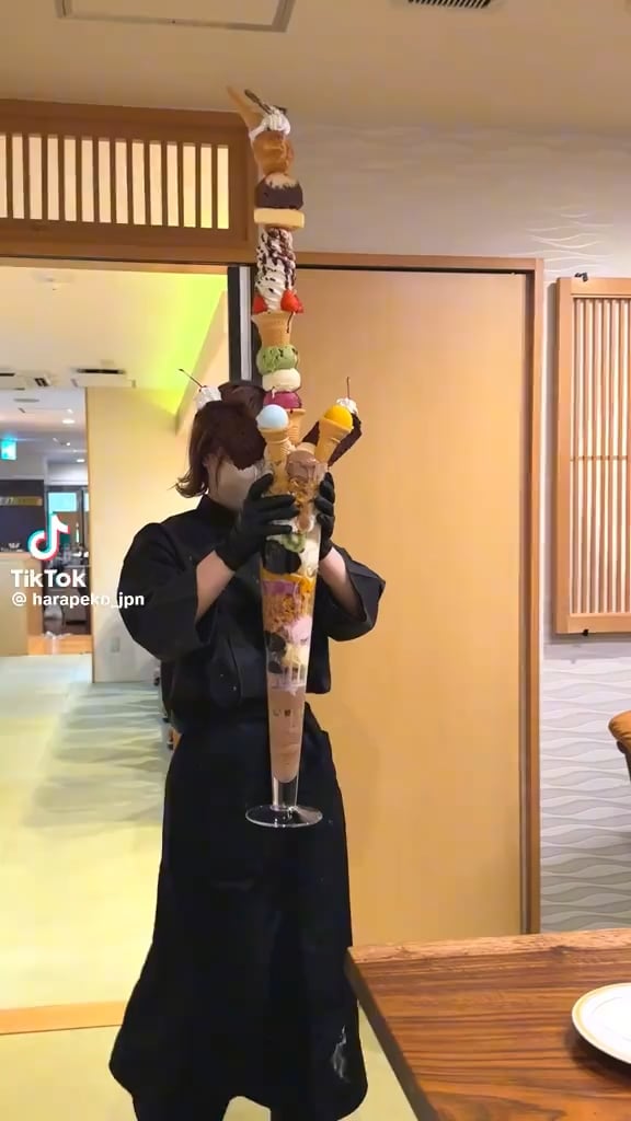 A cafe in Japan makes sundaes like they’re Bloody Marys in Vegas. The ice cream in the bottom has melted by the time they bring it out.