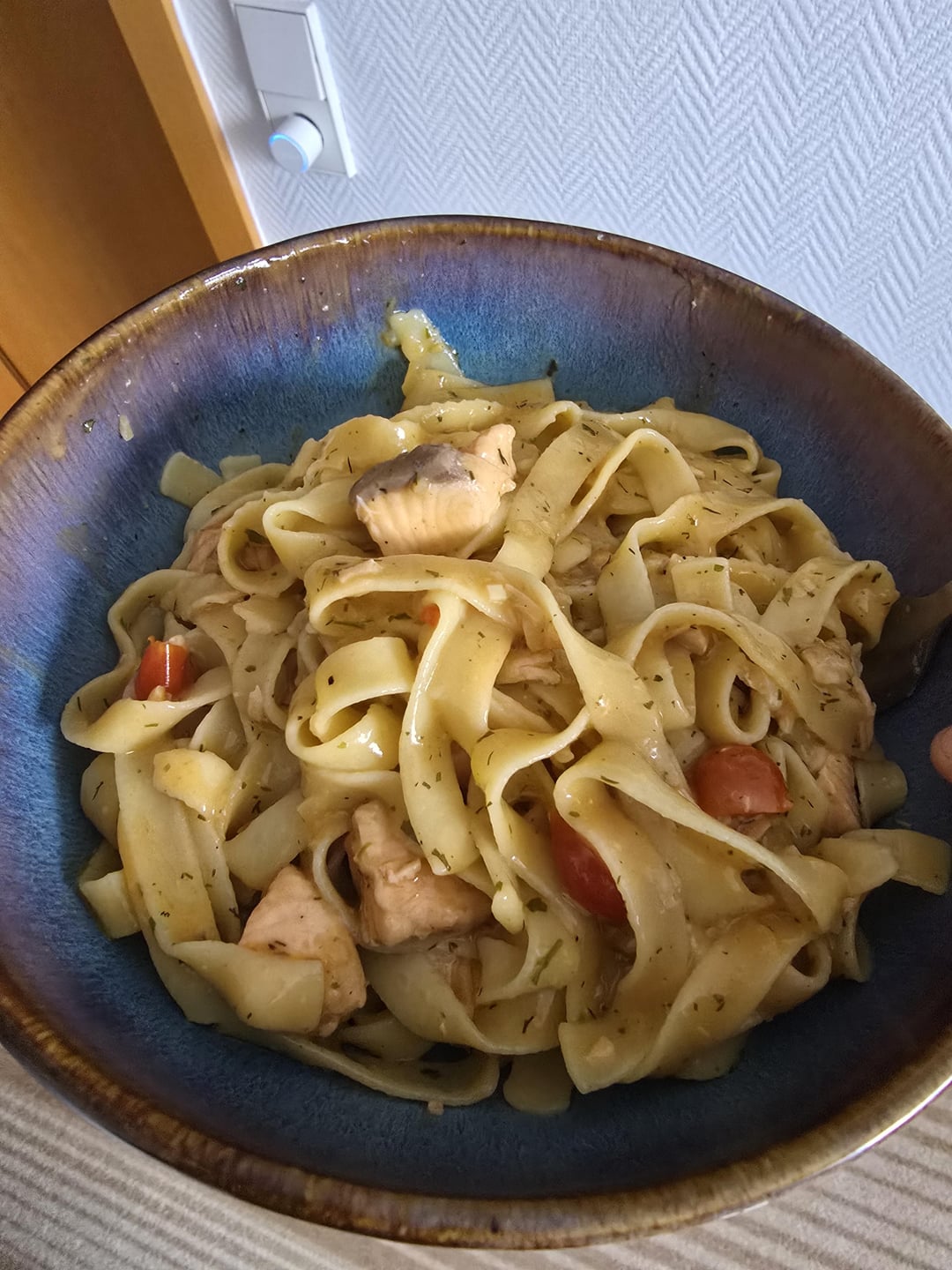 Made some fresh fetuccine with salmon and tomatoes from the gardenby logmask 1 Comment logmask 5 months ago Receipe: 500gr. Semola 200ml liquid with 2 eggs and rest water2 times mixing, resting for 20min, 3rd time mixing and extruding right after
