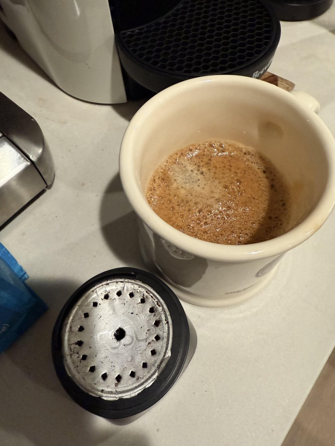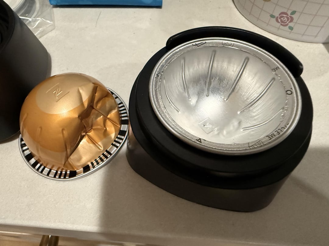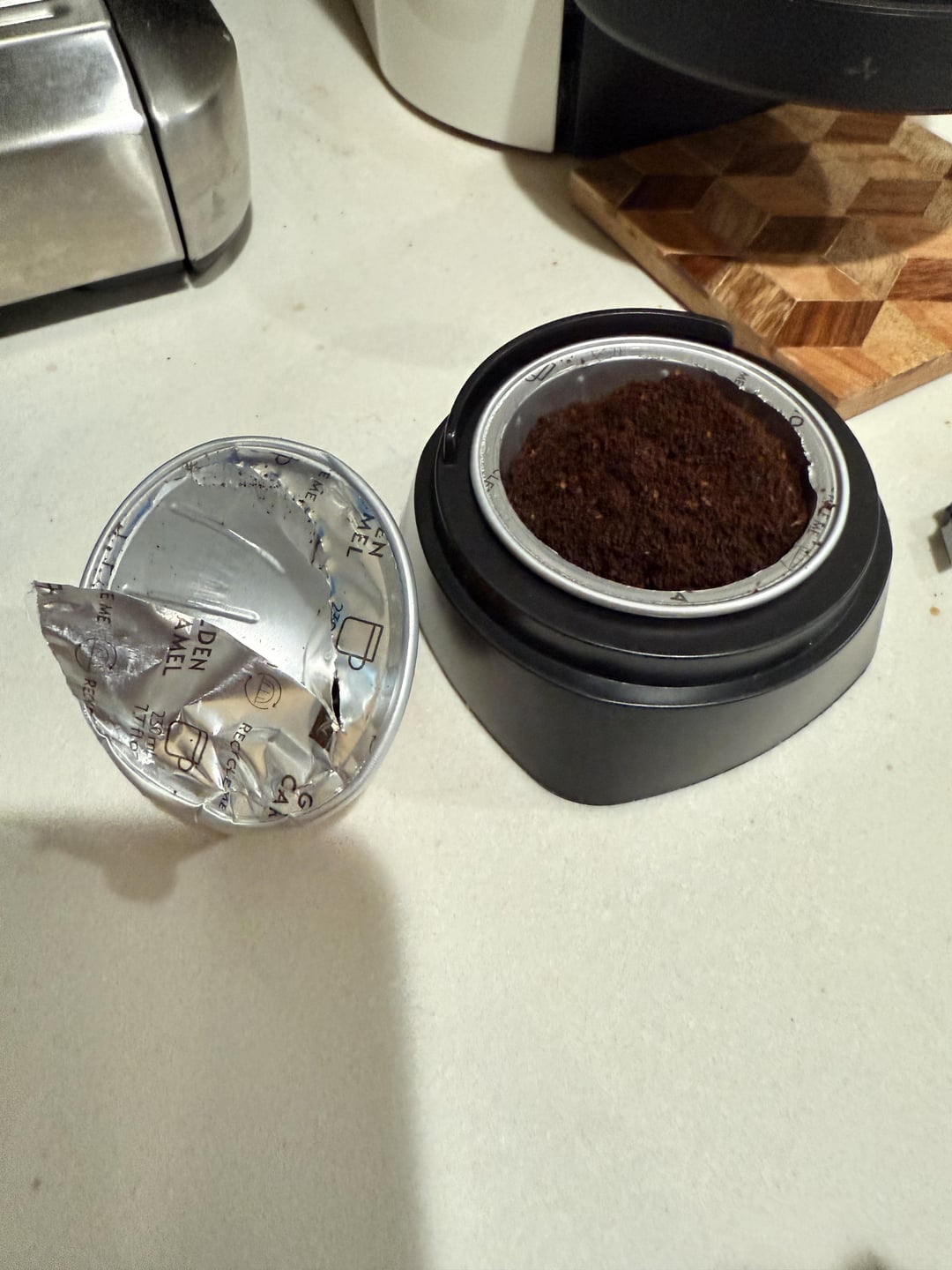 So I purchased some deals from the last Woot sale. The package came in damaged and hence some damaged pods. Decided to use my vertuo cup sealer for the first time. Here is the outcome.