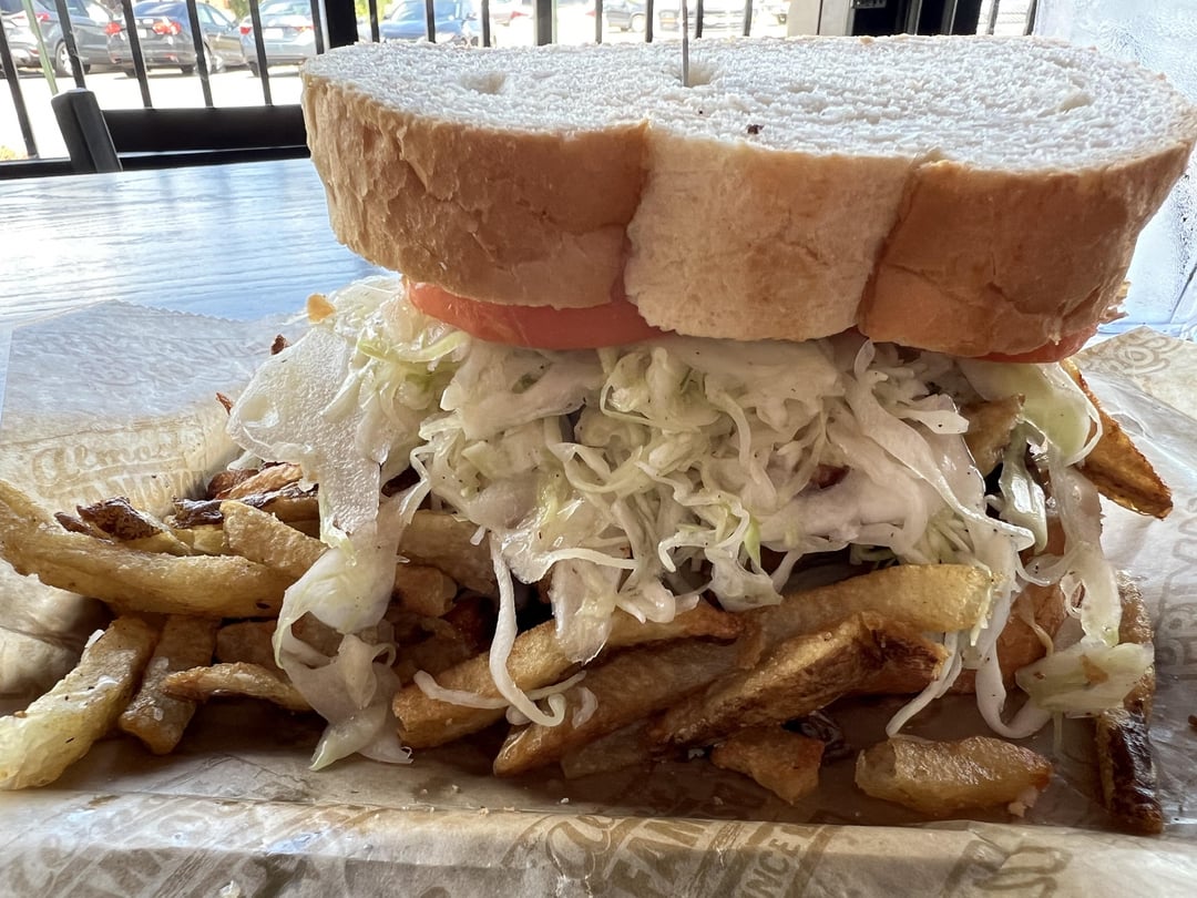 Primanti’s, to me at least, is a very good idea that suffers from poor execution. The proteins are always flavorful, and the Polish slaw adds nice acidity. Where the sandwiches fall down for me are in the fries and in the bread. The fries, in my experience, are always soggy and underseasoned, and the bread would be better if they buttered and griddled it on the side that comes into contact with the fillings.