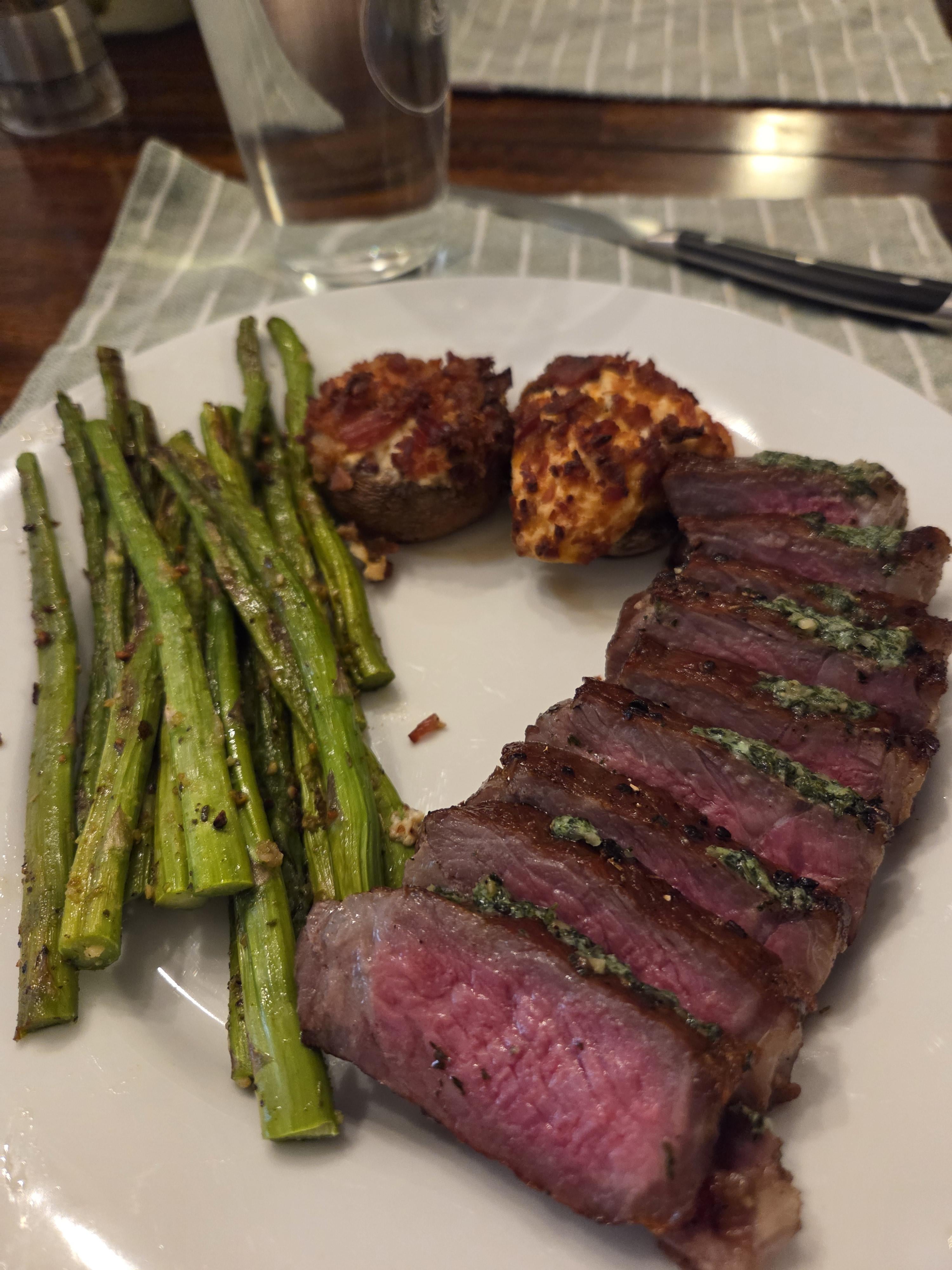 Reverse seared KC strip with some asparagus and stuffed shrooms. Good way to end the weekend. by sw1fty13 5 Comments MaxAdd777 5 months ago Looks tasty and healthy!! Realistic-Fact-2584 5 months ago Yes Sir!!!!! Hungone69696 5 months ago Looks delicious Hour-Stable1054 5 months ago The grill marks tho! Puzzleheaded-Web-398 5 months ago Smash!!!