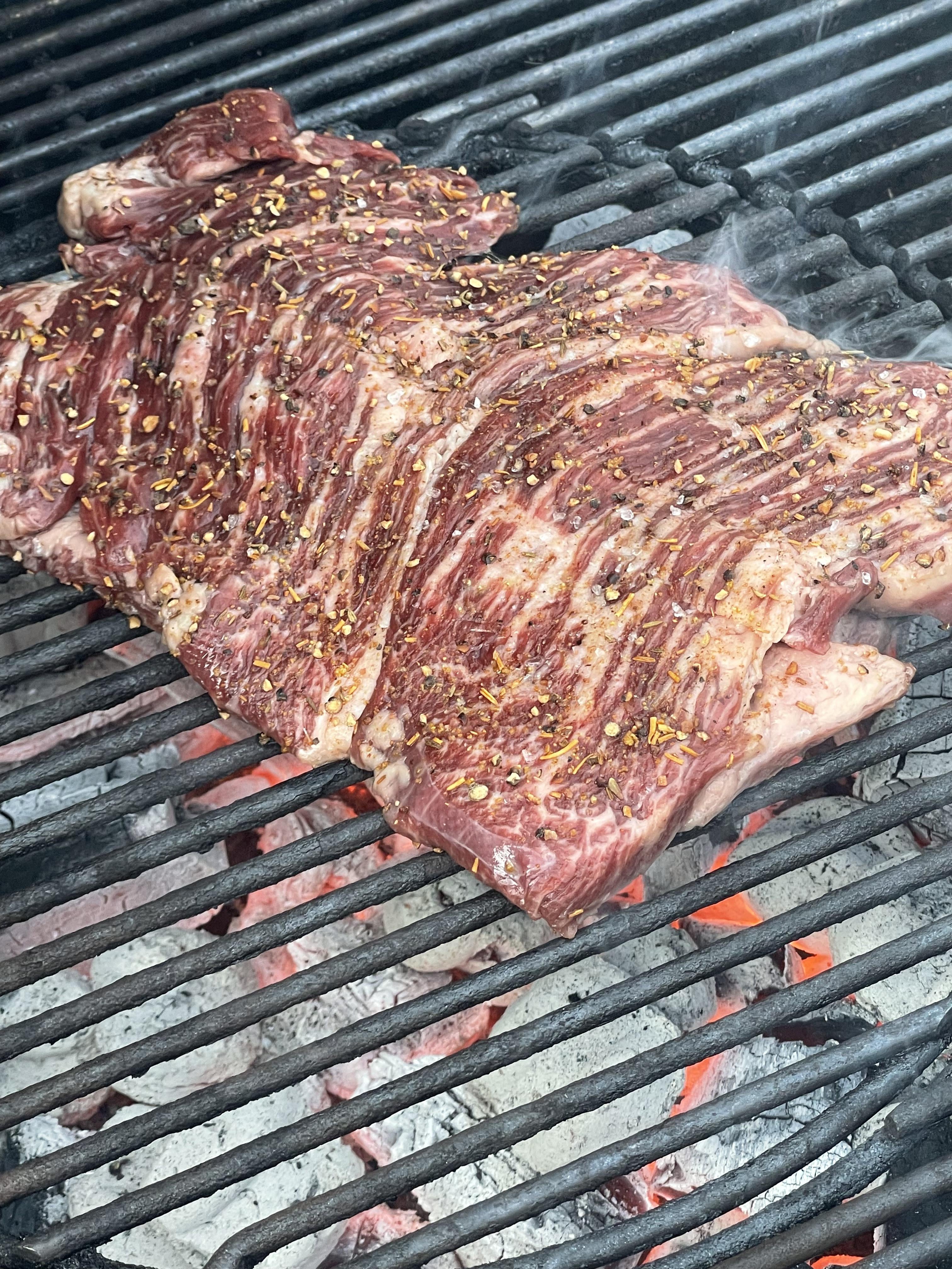 I grilled this beautifully marbled prime grade outside skirt last night and my wife thought it was too rich and fatty. I mean….wtf. After 30 years of marriage, I still can’t get her to just savor the delicious flavor that rendered beef fat provides to a cut of steak.