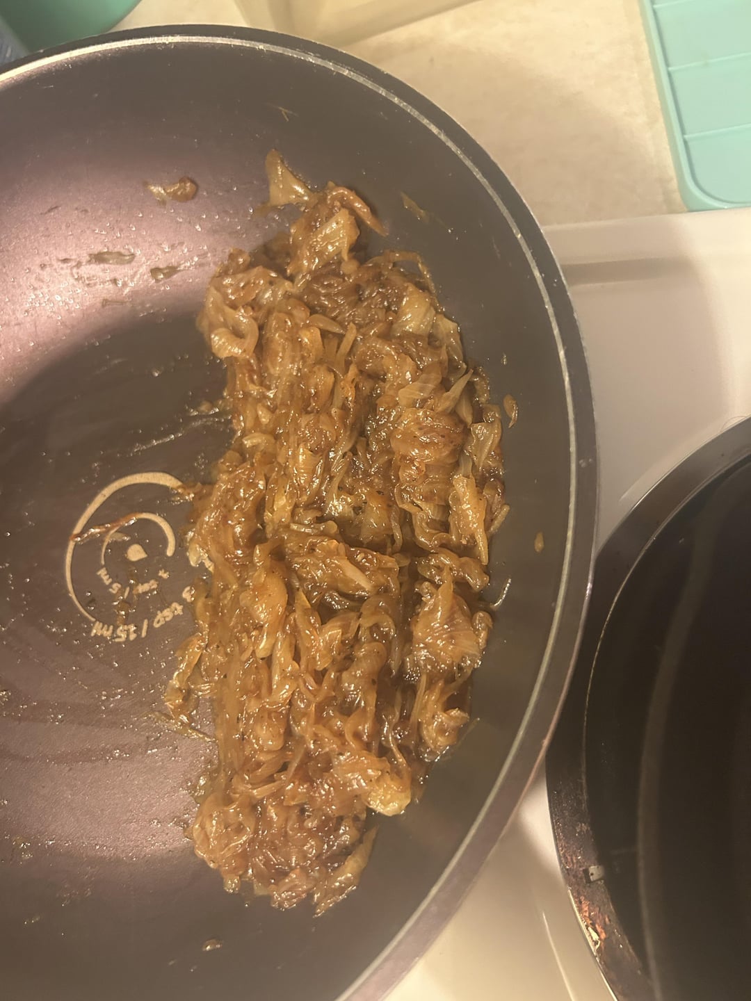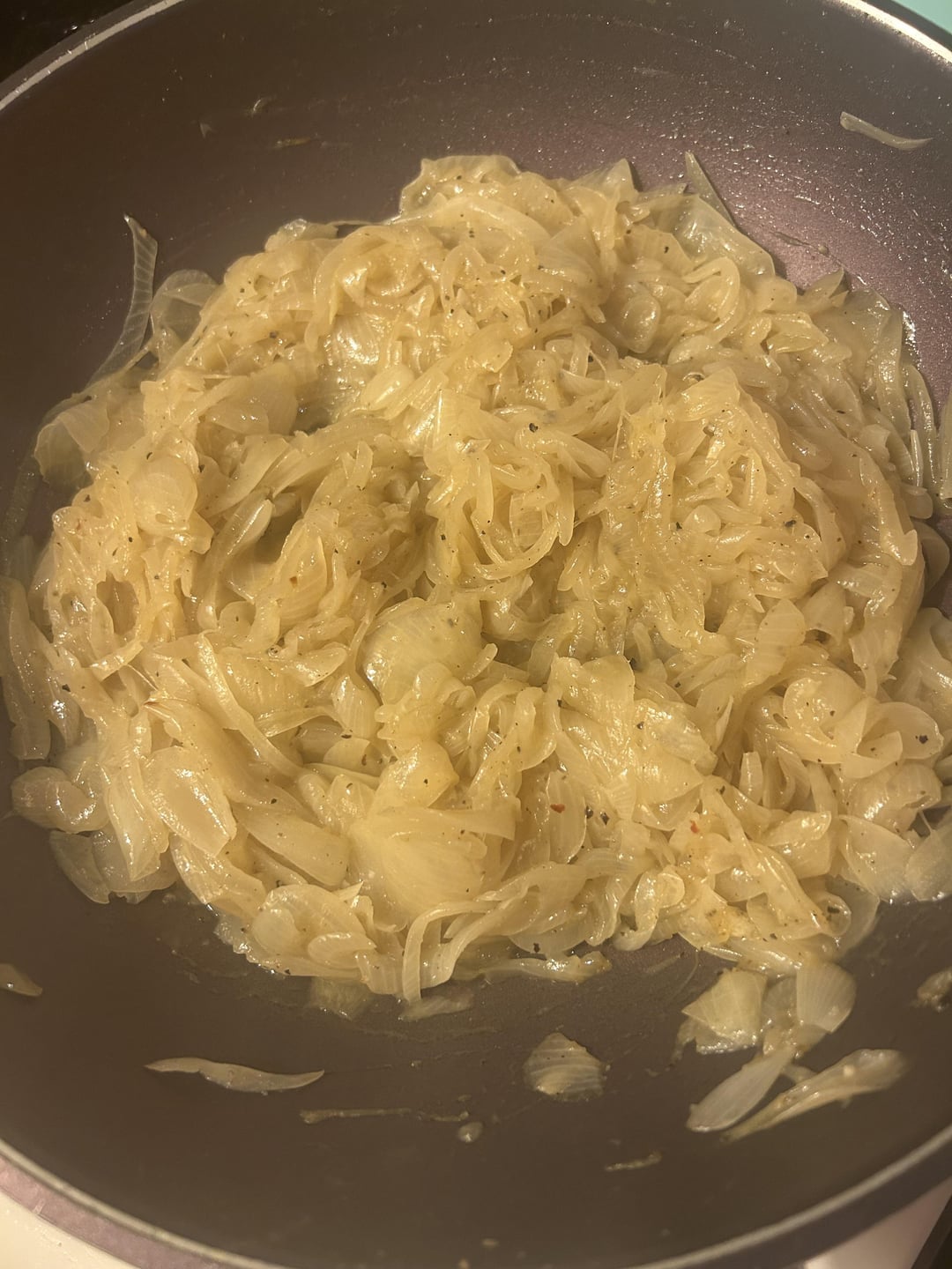 Three pound of onions, carmelized in kerrygold salted butter and canola oil with salt, pepper, a bit of homemade Cajun honey bbq rub and a kiss of balsamic at the end. Would ya just look at it?by CumpaBay 12 Comments OriginalBlackberry89 3 months ago https://i.redd.it/wnhxwk3s39lf1.gif EnvironmentalChip534 3 months ago These look PERFECT! I need to try this. speckkit 3 months ago beautiful east_van_dan 3 months ago Now we’re talkin. YogaChefPhotog 3 months ago Yummmm!! It makes me irrationally angry how much they cook down! Like spinach! Where’d it all go?! LOL BoringJuiceBox 3 months ago  Sea-Flamingo1969 3 months ago I’m looking… Respectfully GooseGosselin 3 months ago  Fine_Pool5722 3 months ago Sure thats enought? liltinyoranges 3 months ago dammit Dr_Opadeuce 3 months ago  Particular-Wrongdoer 3 months ago Overcrowding the pan is the secret to caramelizing onions. The water from the onions deglazes the pan and helps prevent scorching.