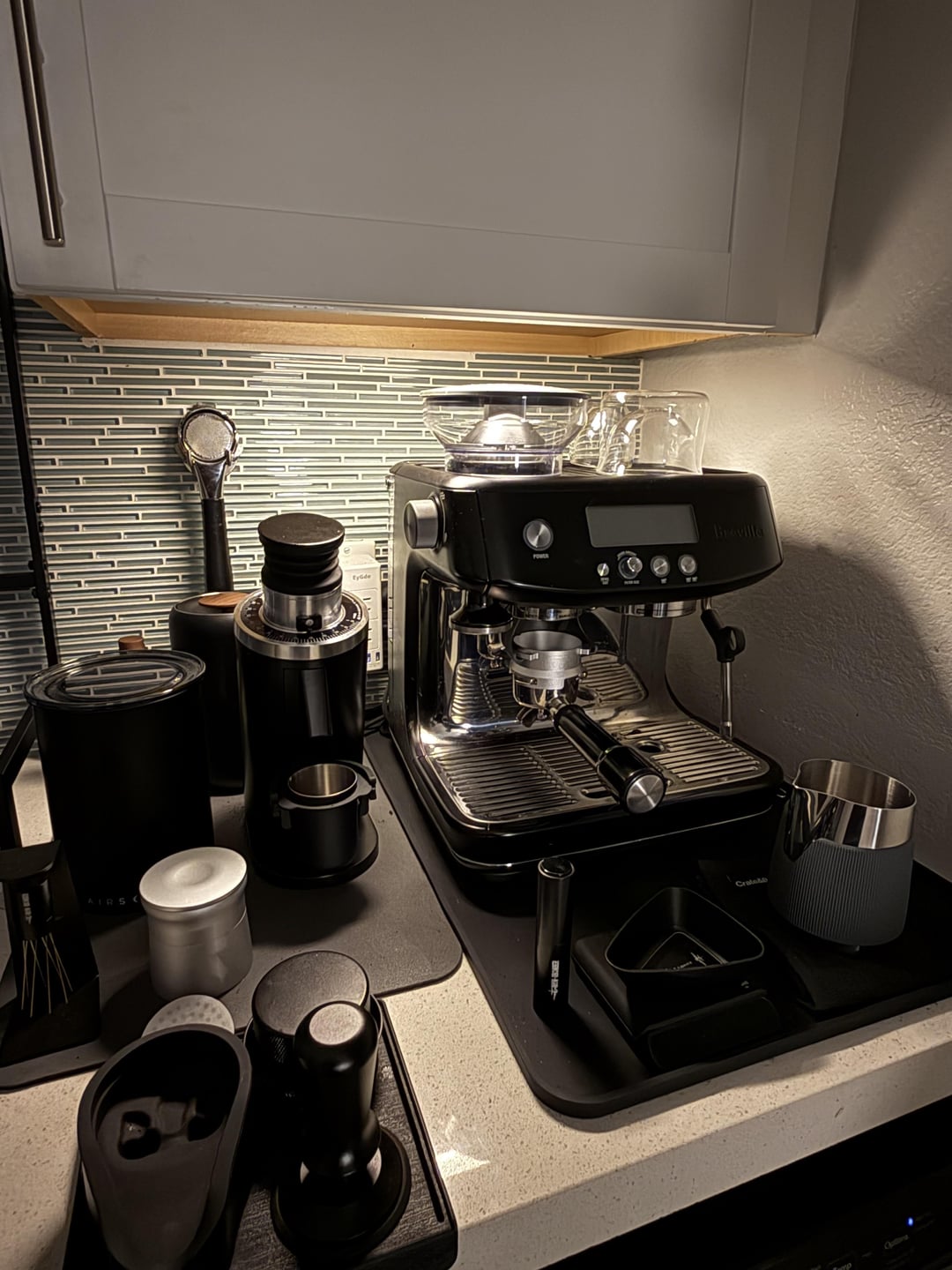 Just got into making espresso about 2 months ago after buying my wife an espresso machine for our anniversary and I was super unprepared for the rabbit hole you go into incredibly quickly 😅. After a couple lucky amazon sales and facebook marketplace finds and what feels like hours of research, I finally feel like I can relax and just enjoy my setup for a while. Any tips/feedback/ recommendations would be awesome.