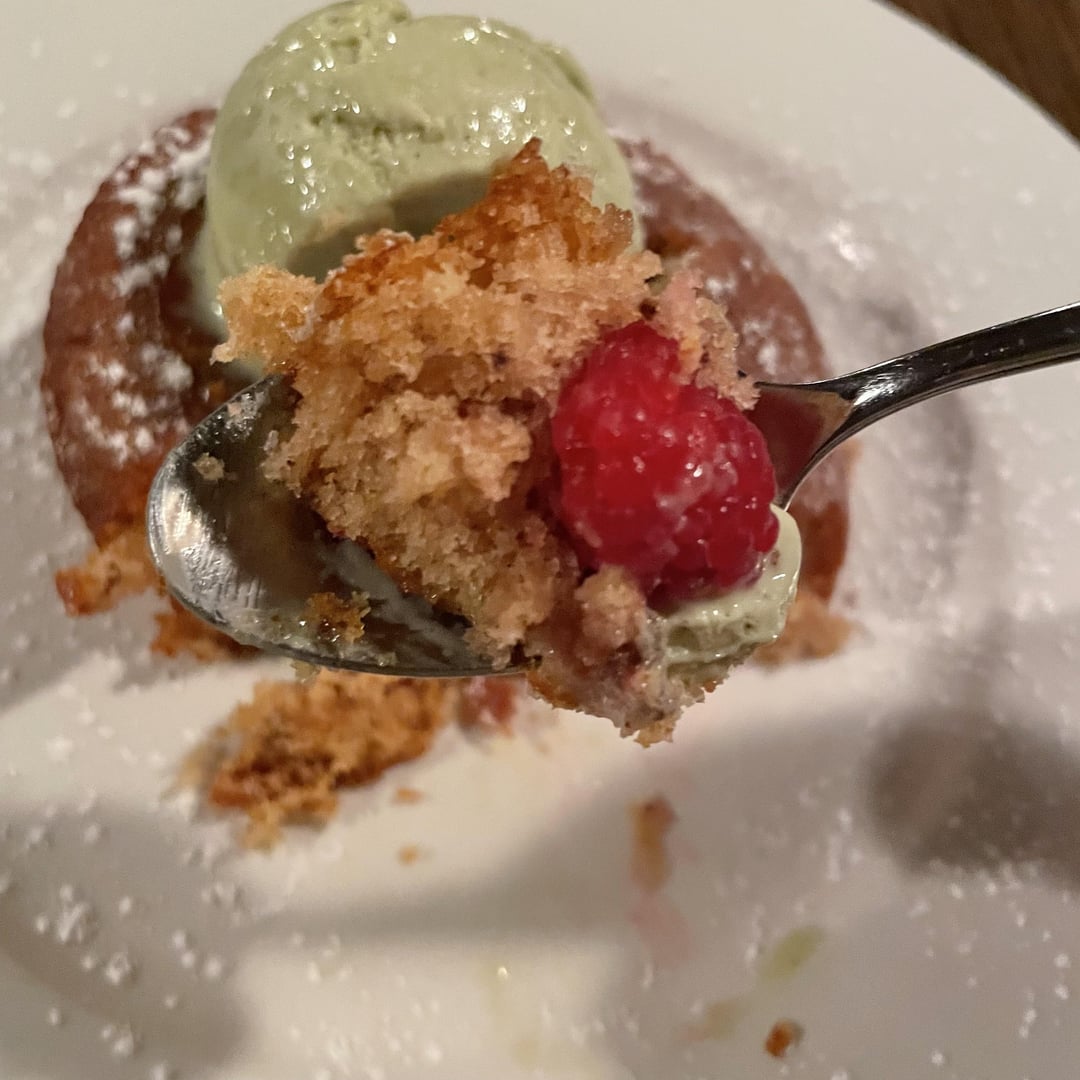 It’s been a while since my last visit to The Oxley in Yorkville. And first time going on a Sunday. So that means Sunday roast ($38) time! The nicely cooked prime rib came with all the proper fixings: Yorkshire pudding, greens, roasted potatoes and veg and plenty of delicious gravy. Wish I had room for their amazing sticky toffee pudding. Instead I got the “light” and summery ginger walnut cake with raspberries and pistachio ice cream. The sponge cake was served warm and with all the components made the perfect bite. Whole dinner hit the spot.