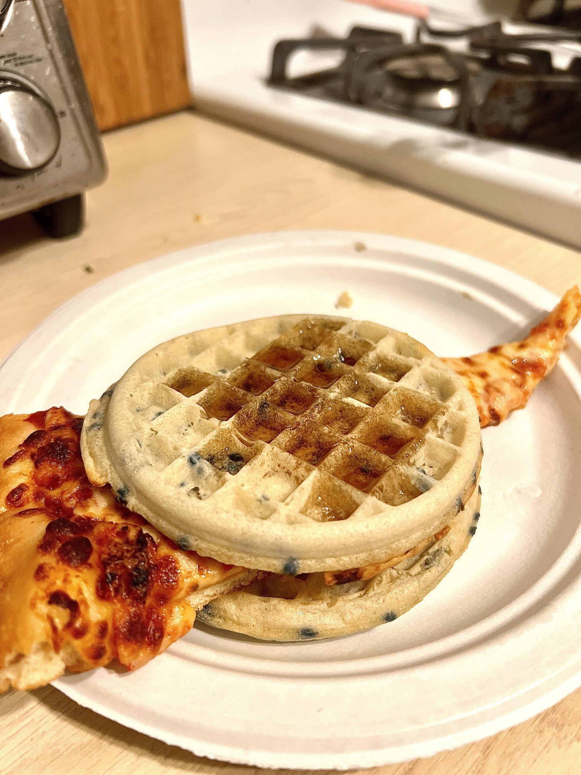 Double guilty. Not only a crime against pizza, but also a crime against waffles too