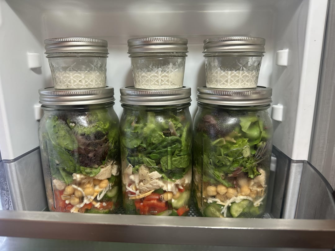 if you would have told me, I would be meal prep one day, I would look at you and laugh. I lived on lean cuisine or doordash. I never cooked or made my own meals. I downloaded tiktok a few days ago, and I saw these cute salad jars and boom, I bought the same jars the next day.