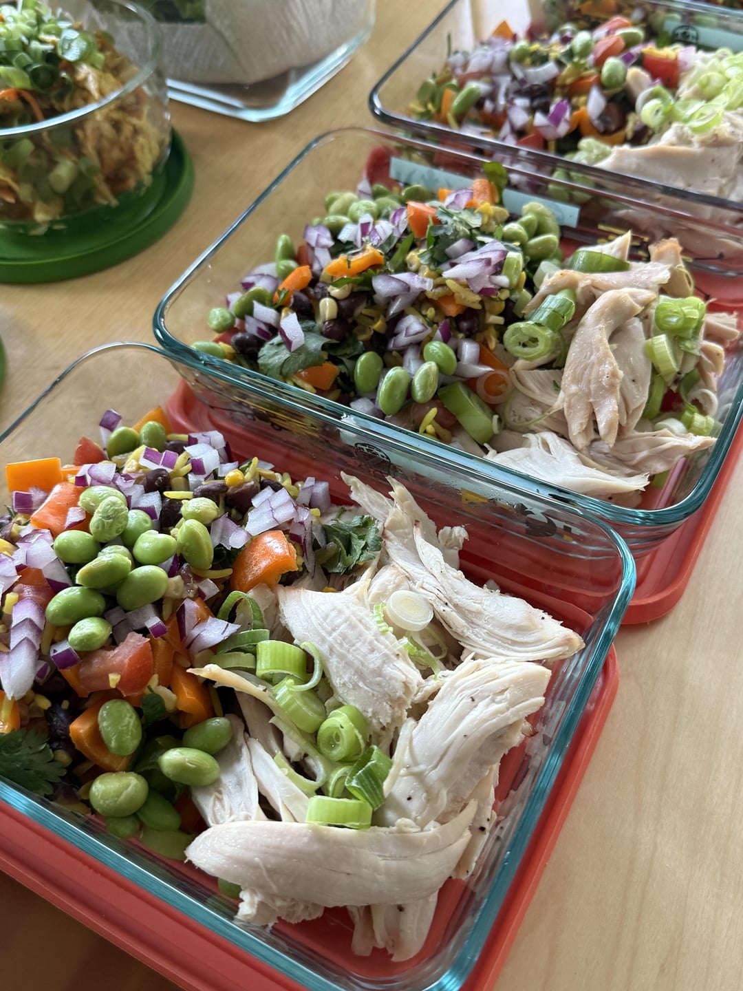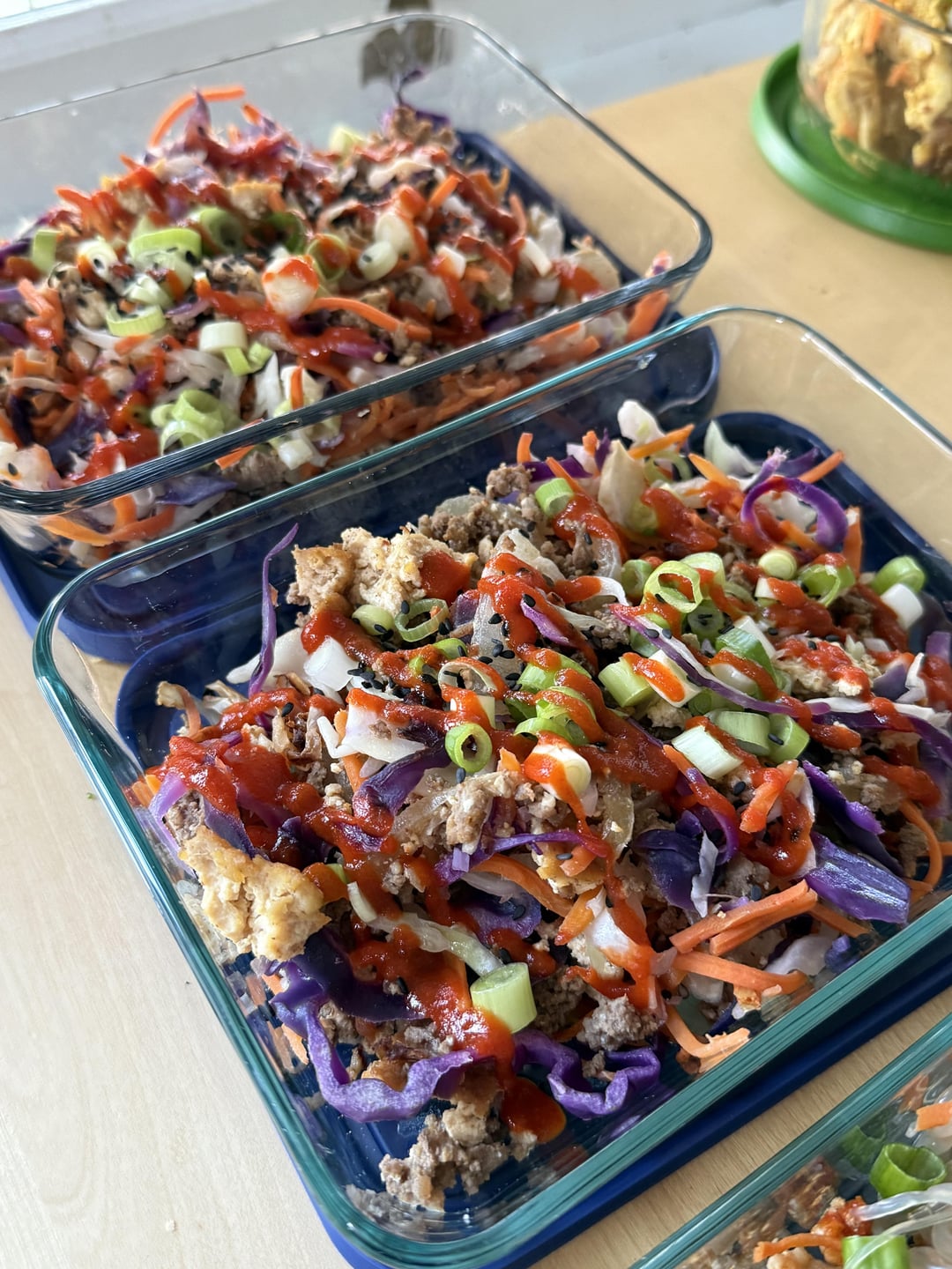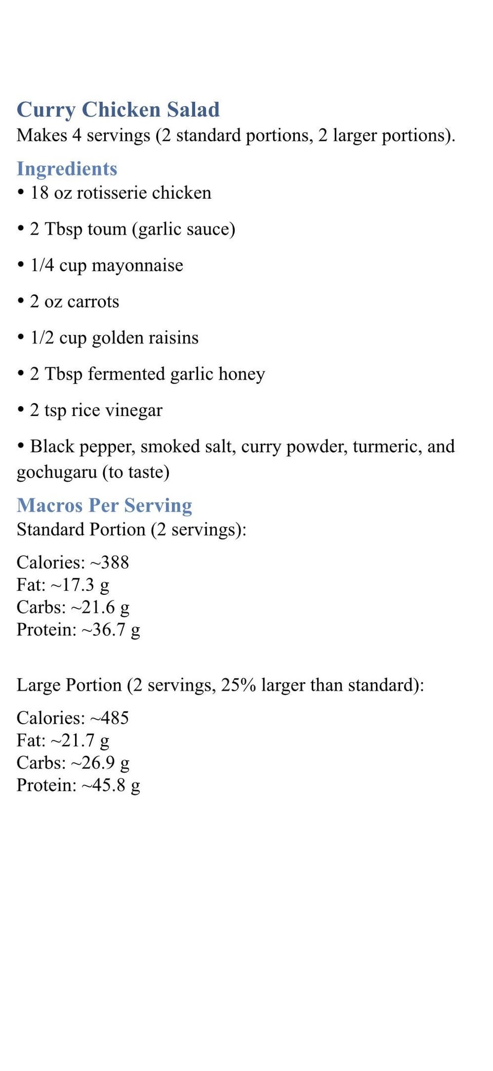 Egg roll in a bowl, cowboy caviar & chicken, a variation on Japchae, curry chicken salad with butter lettuce. My husband’s portions are 25% larger than mine, so some recipes have 2 sets of macros.