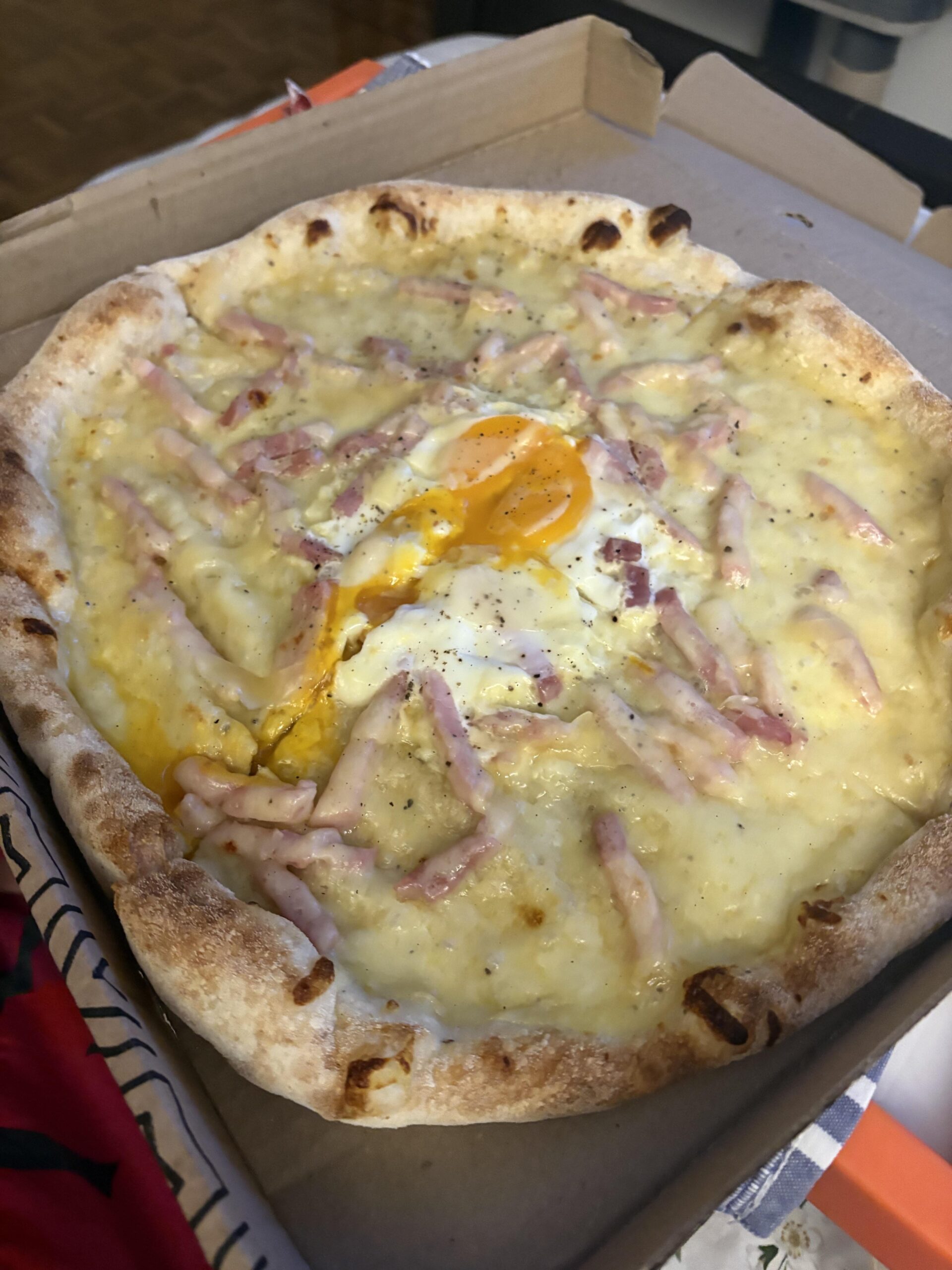 Speaking from experience, I’ve eaten a pancetta pizza topped with egg and it was honestly pretty good. It looked a lot better than this tho.