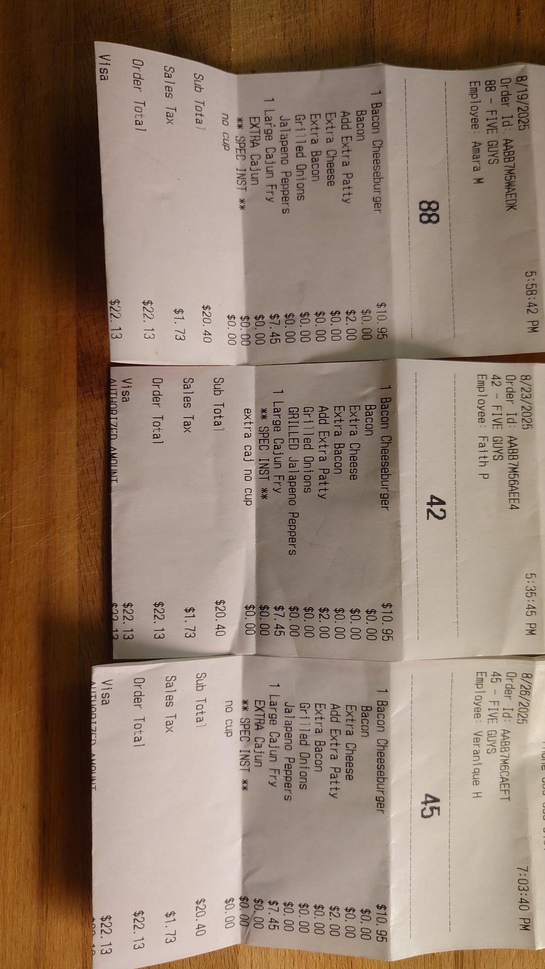 Had five guys for dinner tonight too. On Uber eats and postmates they have a buy one get one free deal on cheeseburgers and bacon cheeseburgers.